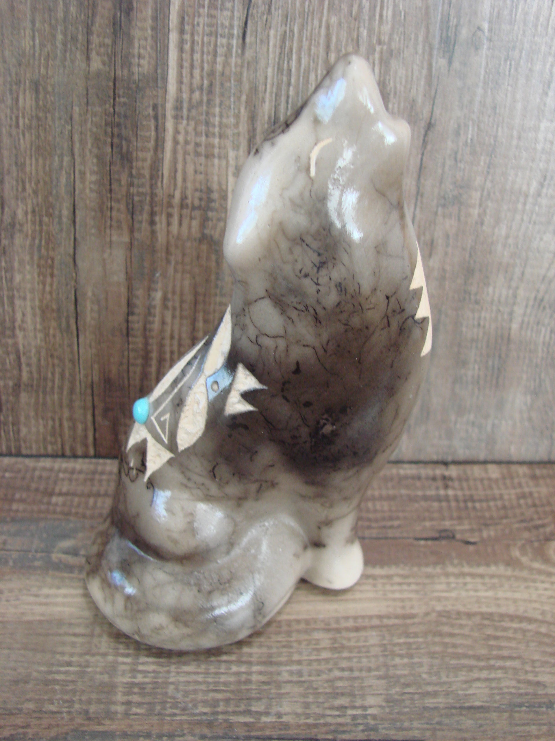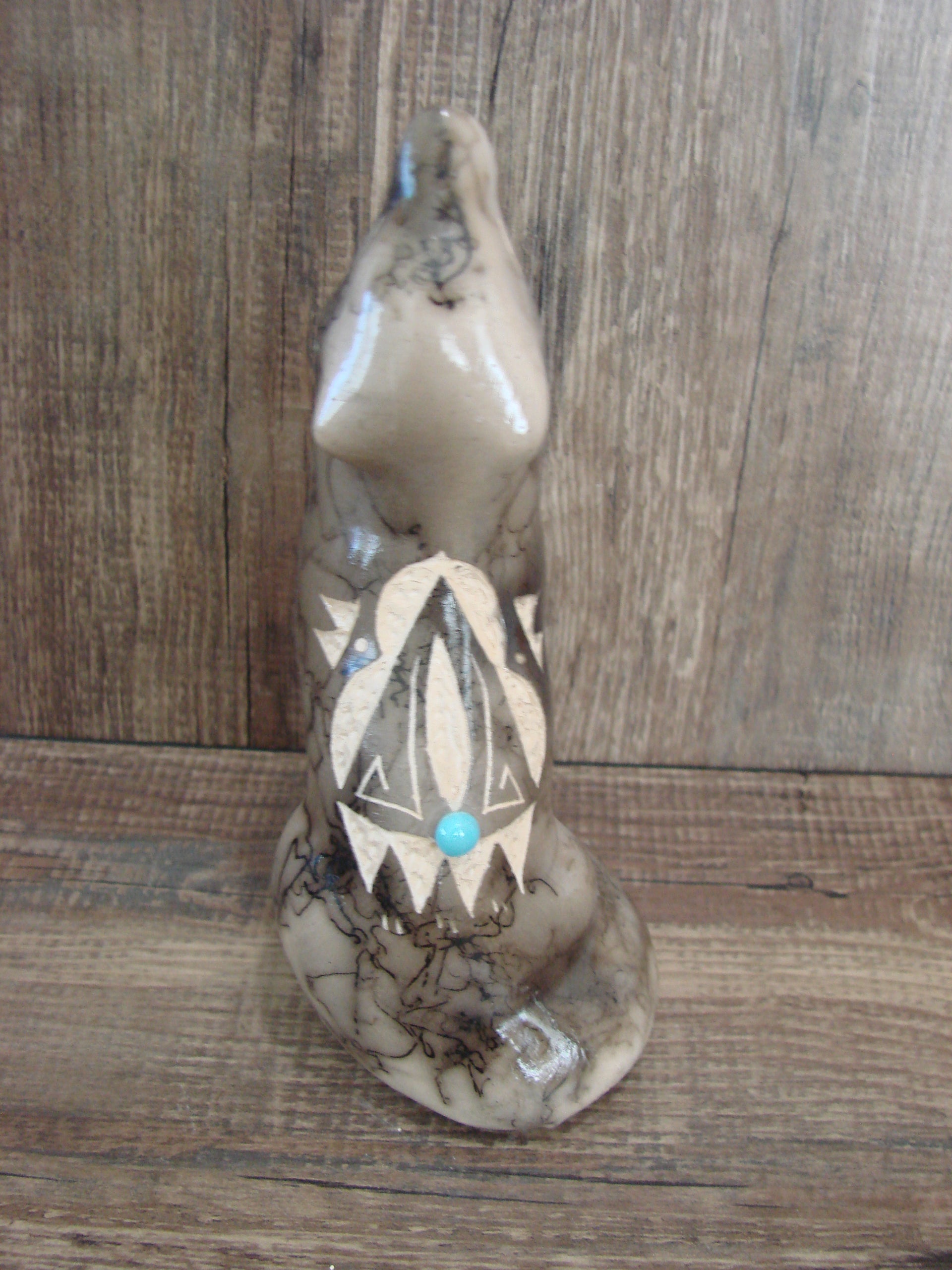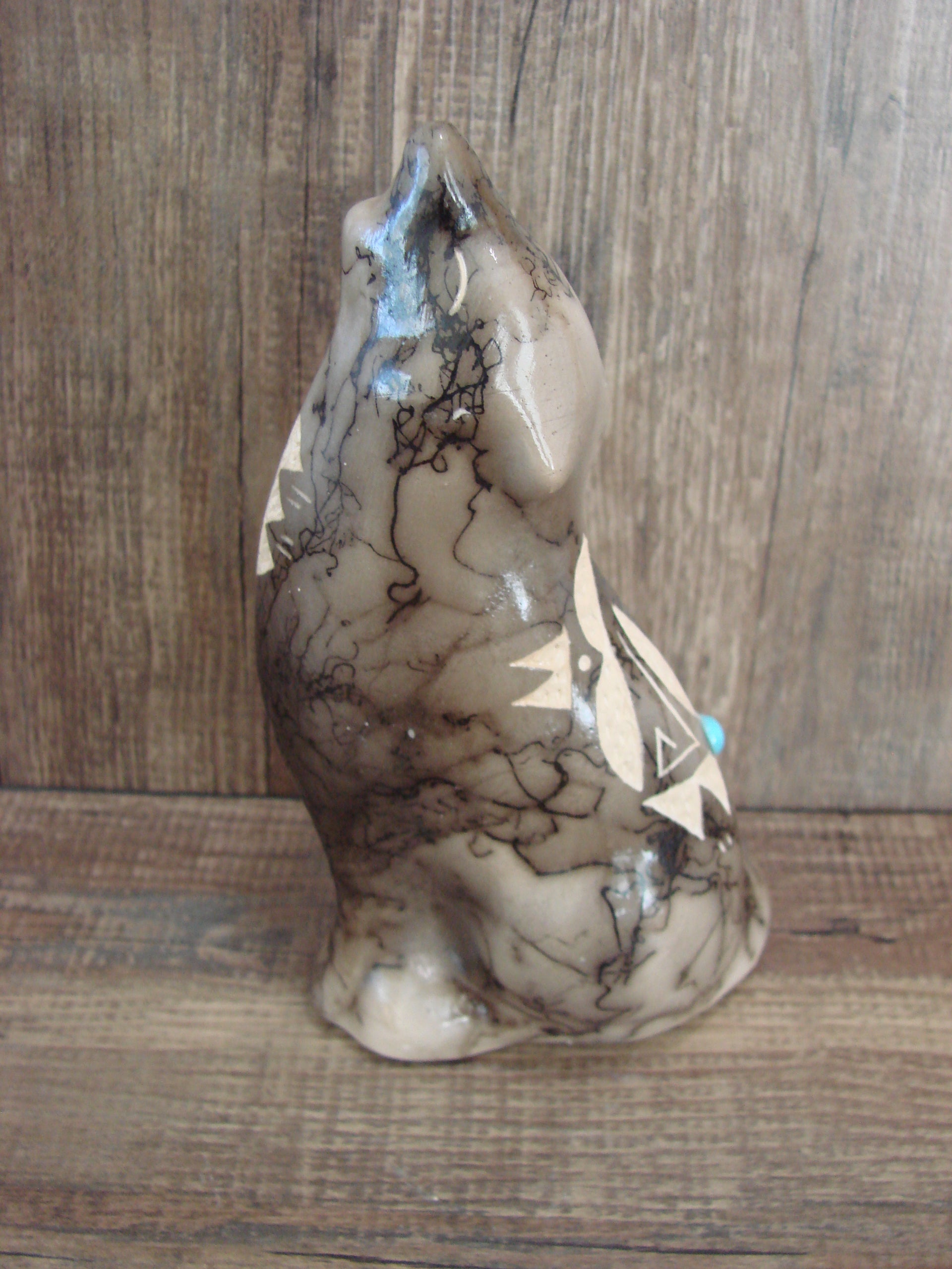 Navajo Pottery Horse Hair Howling Wolf Sculpture by Vail