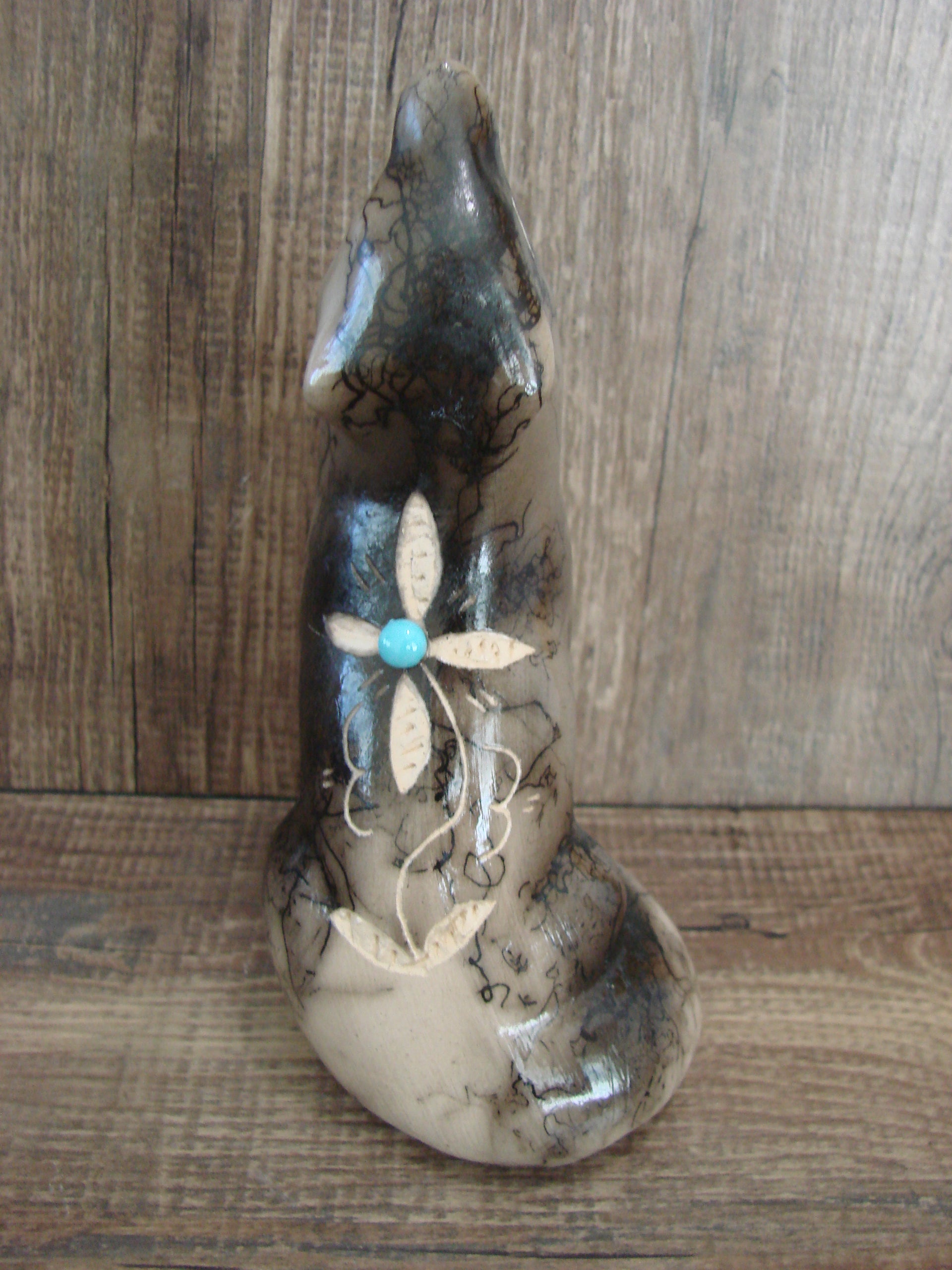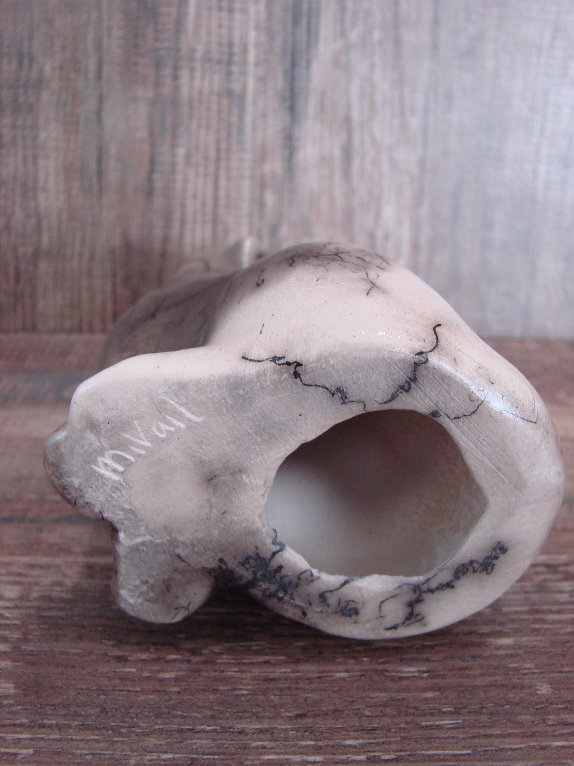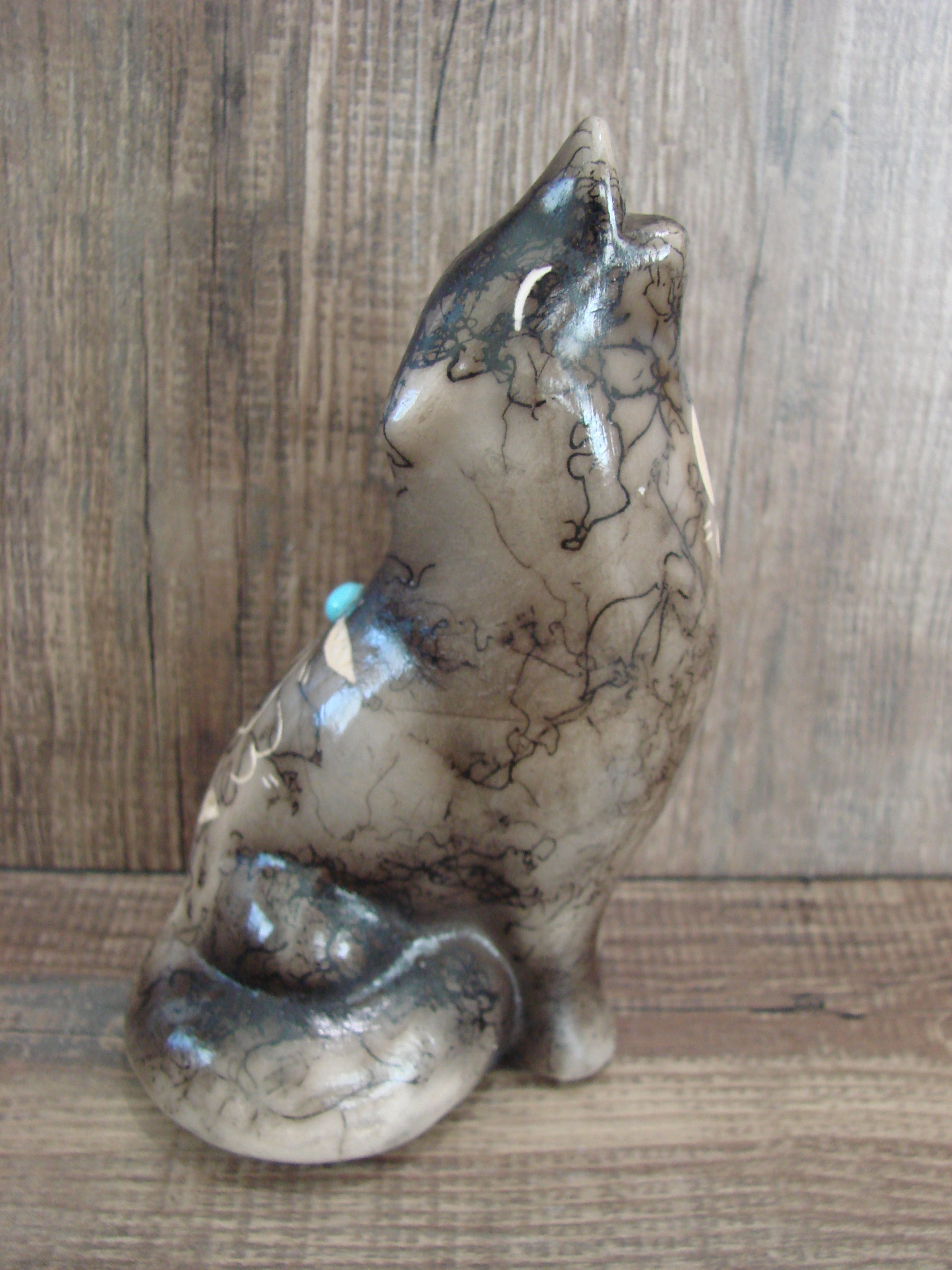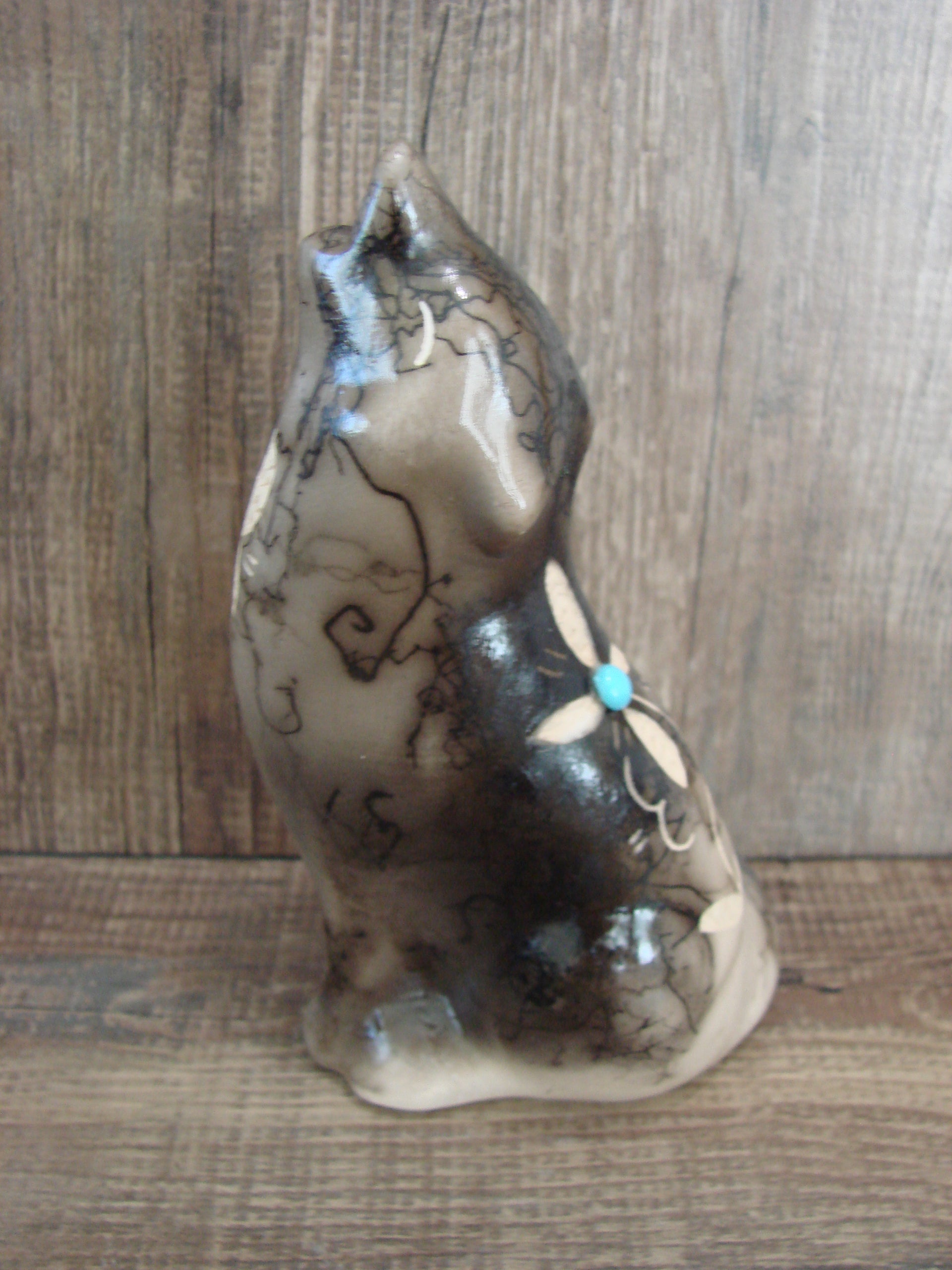 Navajo Pottery Horse Hair Howling Wolf Sculpture by Vail