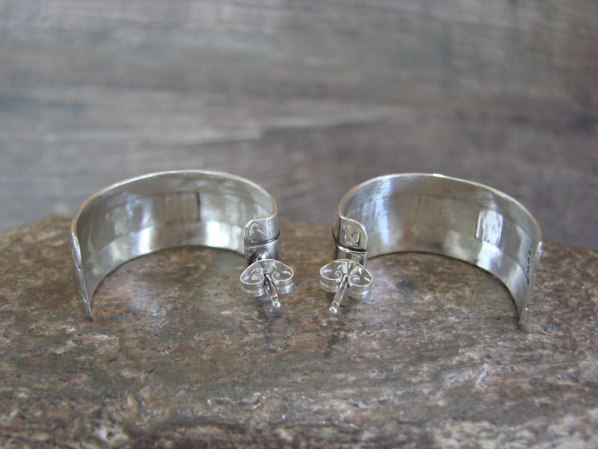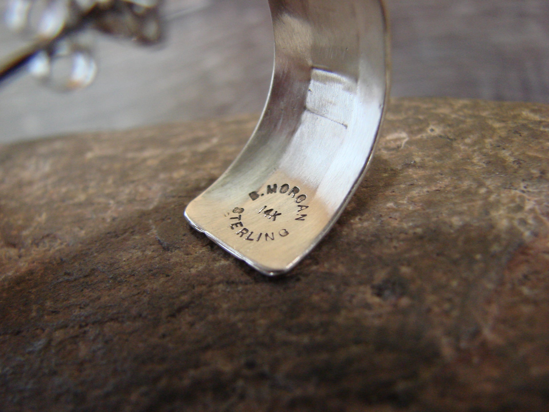 - Navajo Sterling Silver & 14K Gold Half Hoop Earrings Signed Bruce Morgan