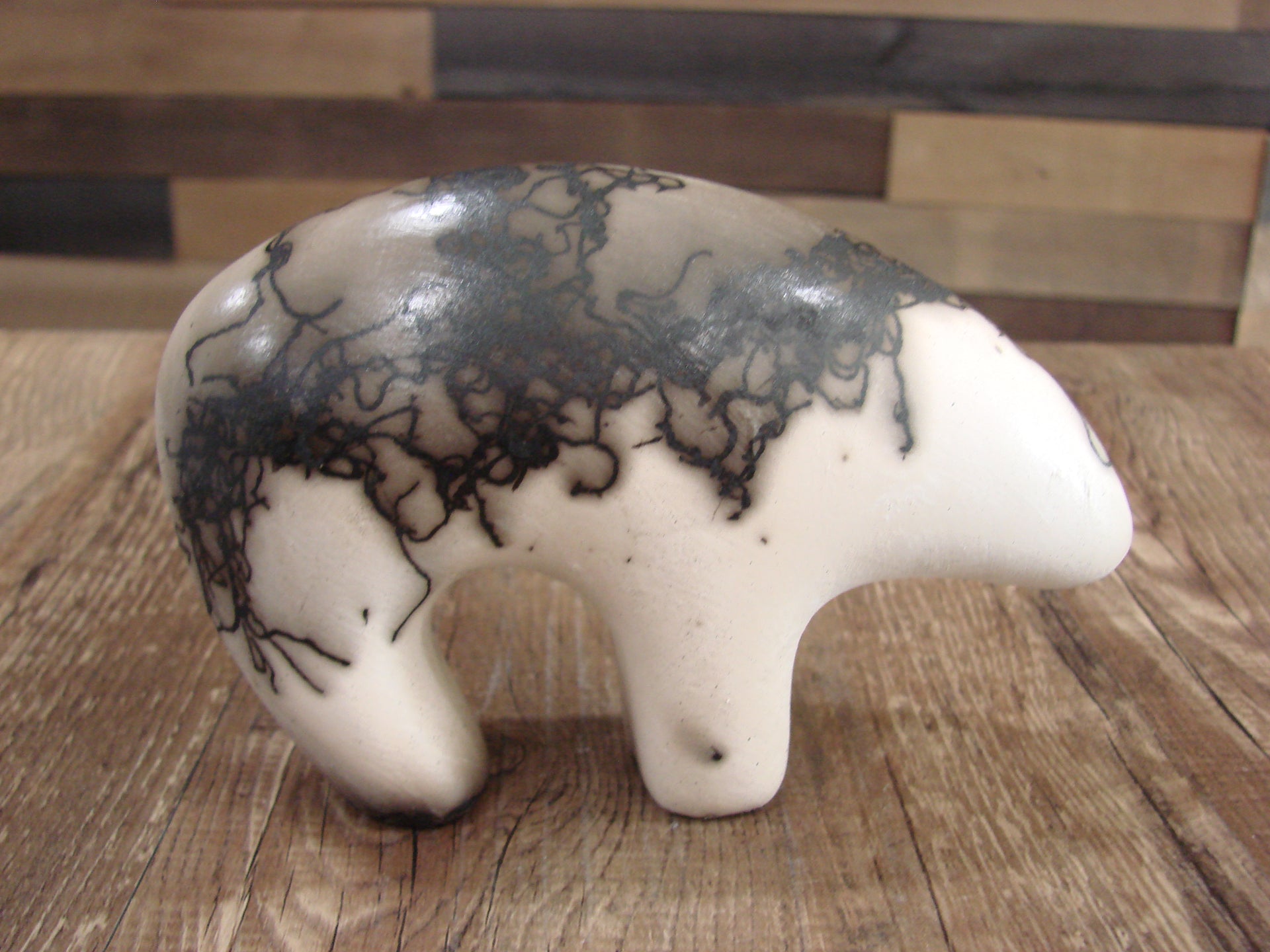Small Native American Pottery Horse Hair Bear Sculpture by Vail
