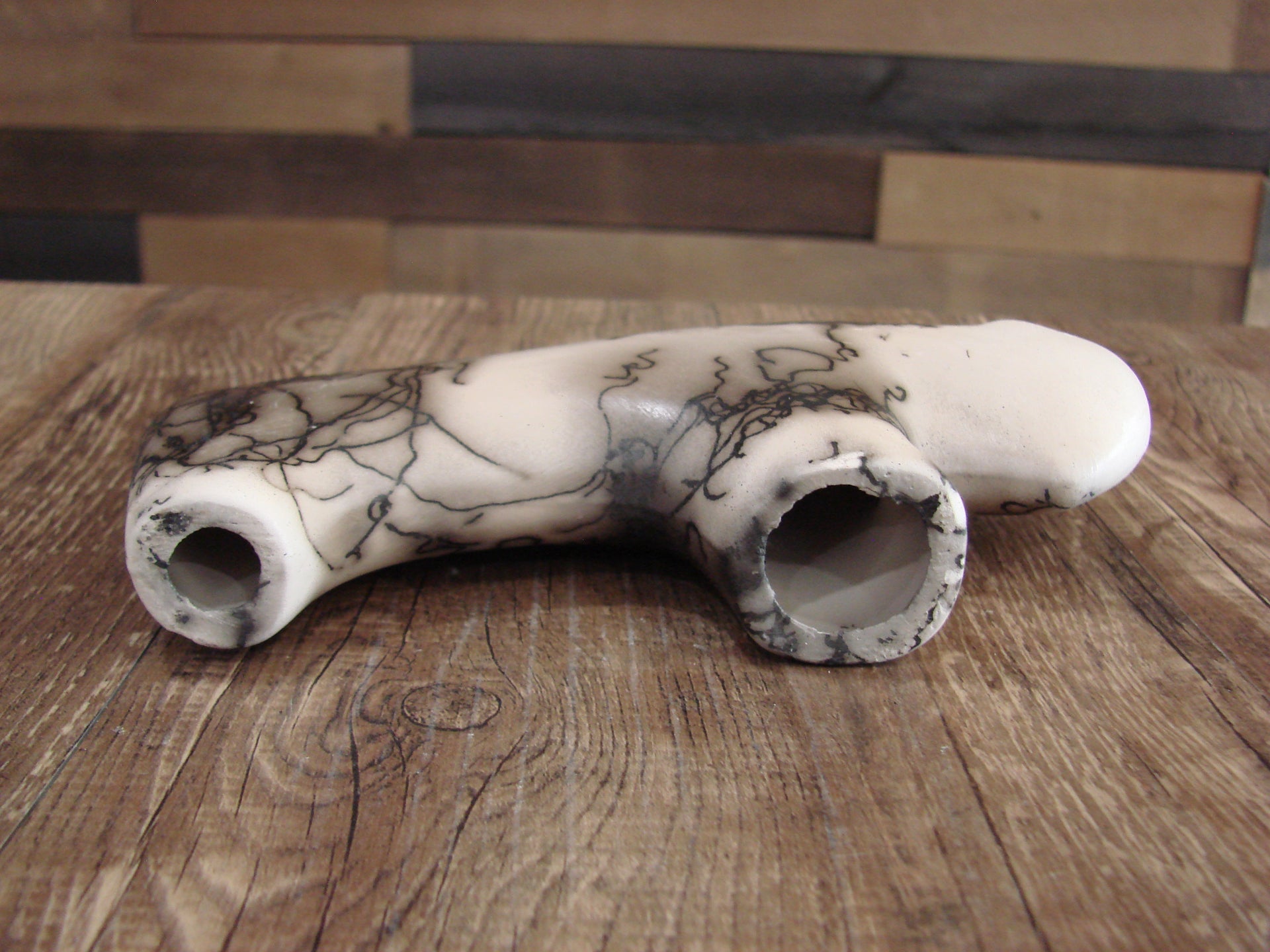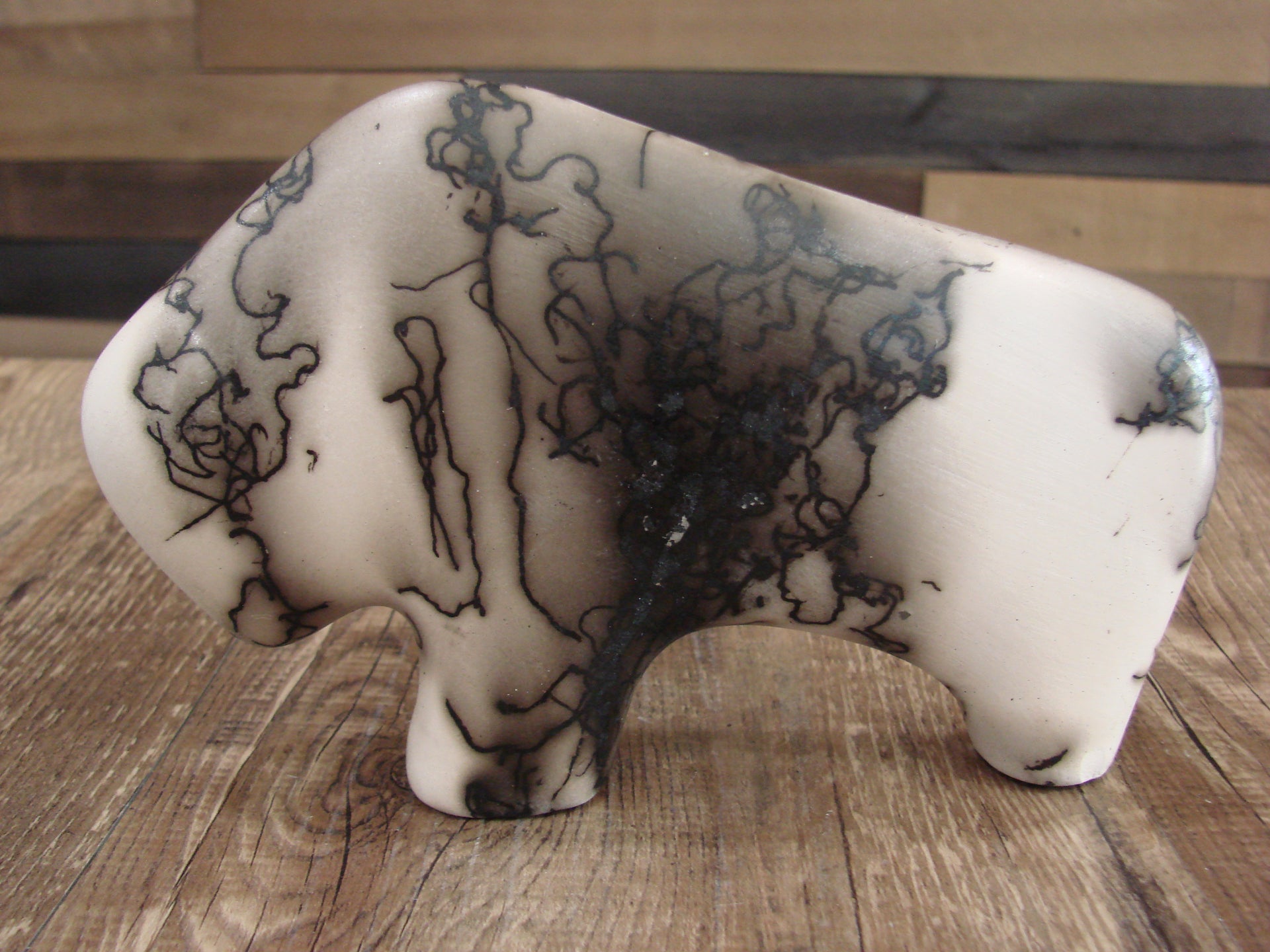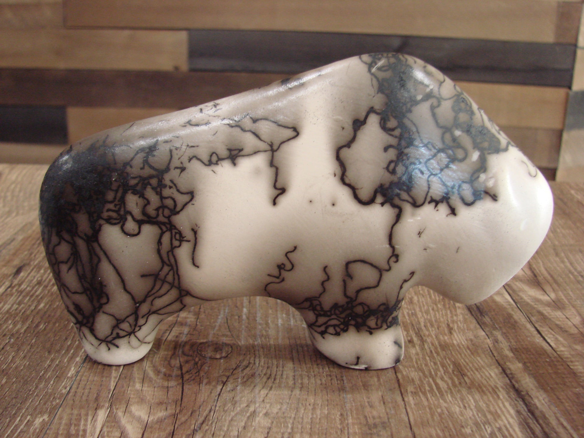 Small Native American Pottery Horse Hair Buffalo Sculpture by Vail