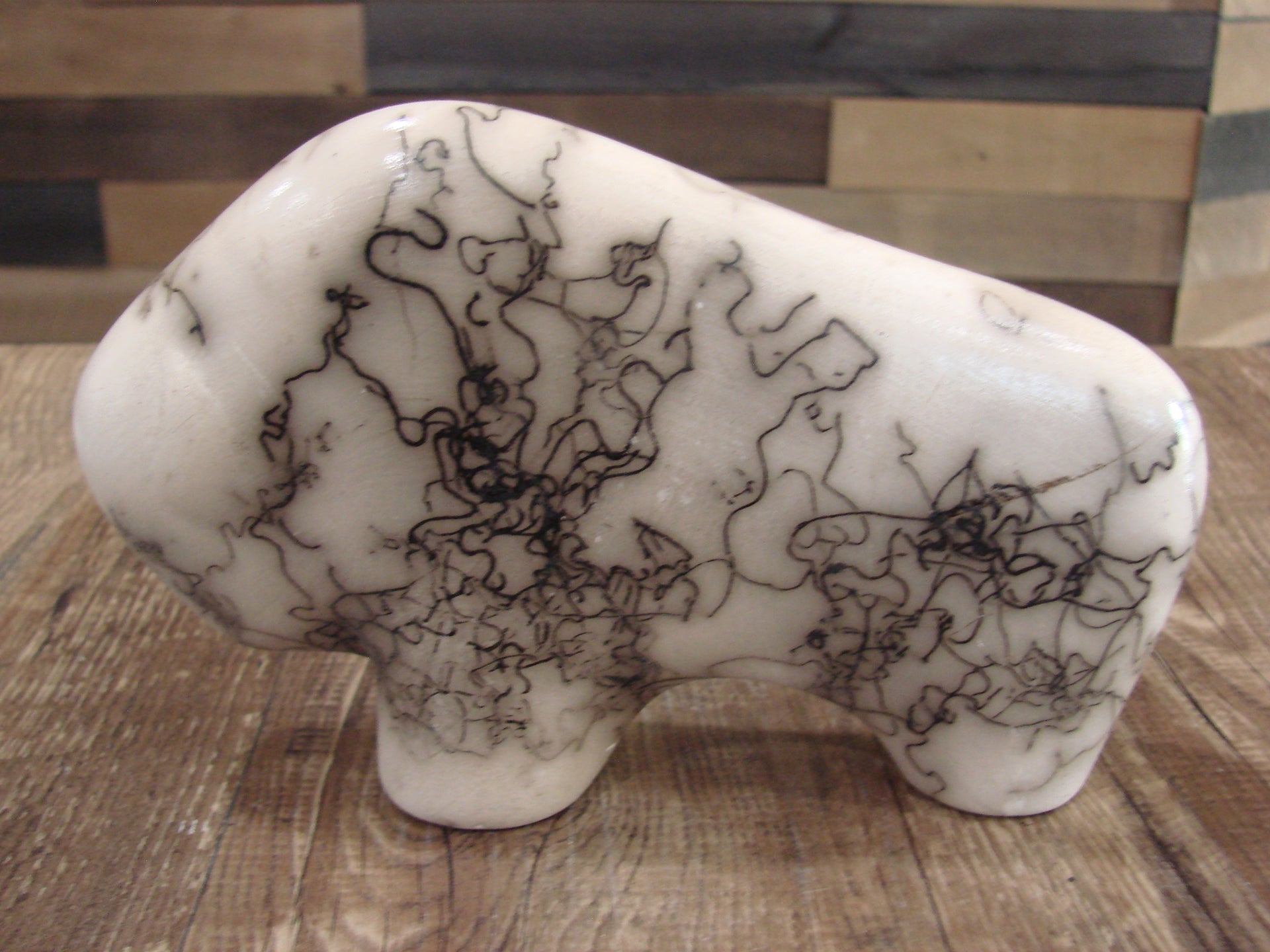 - Small Native American Pottery Horse Hair Buffalo Sculpture by Vail