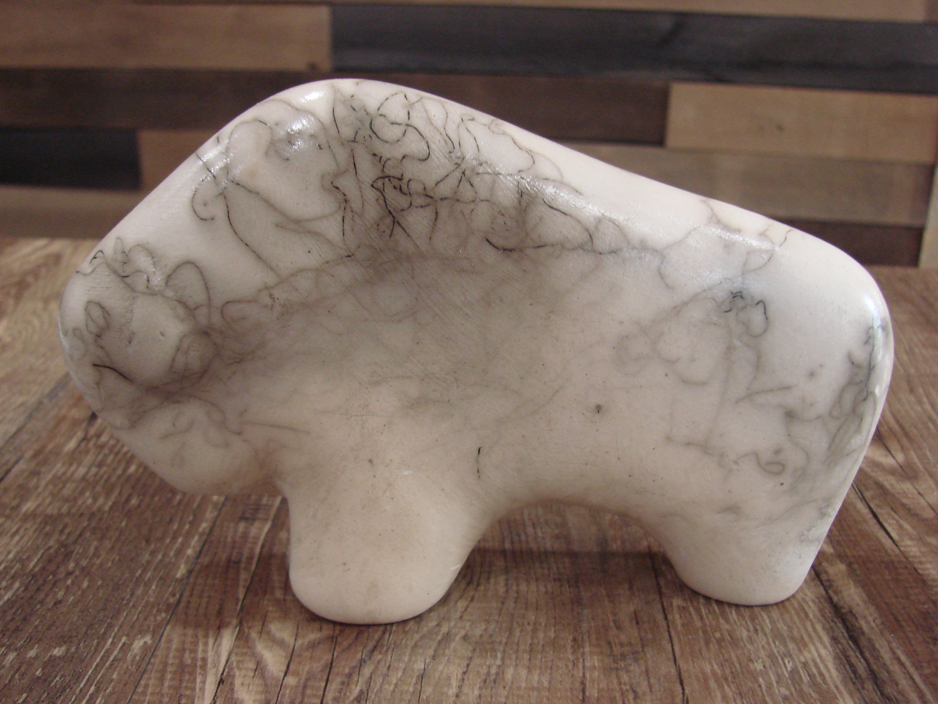 - Small Native American Pottery Horse Hair Buffalo Sculpture by Vail