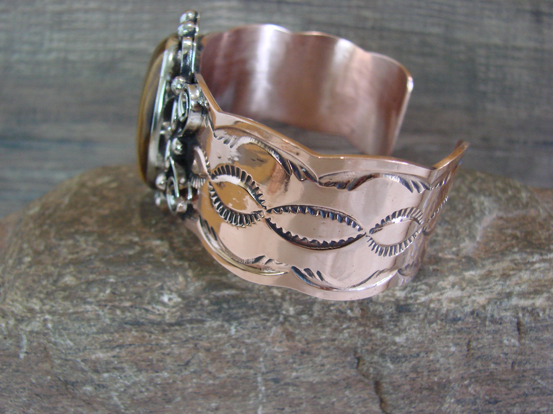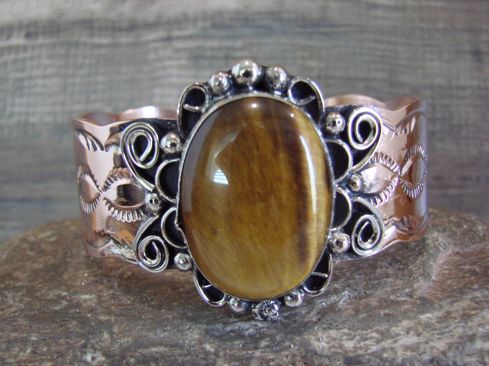 Navajo Indian Copper & Tiger Eye Bracelet by Cleveland