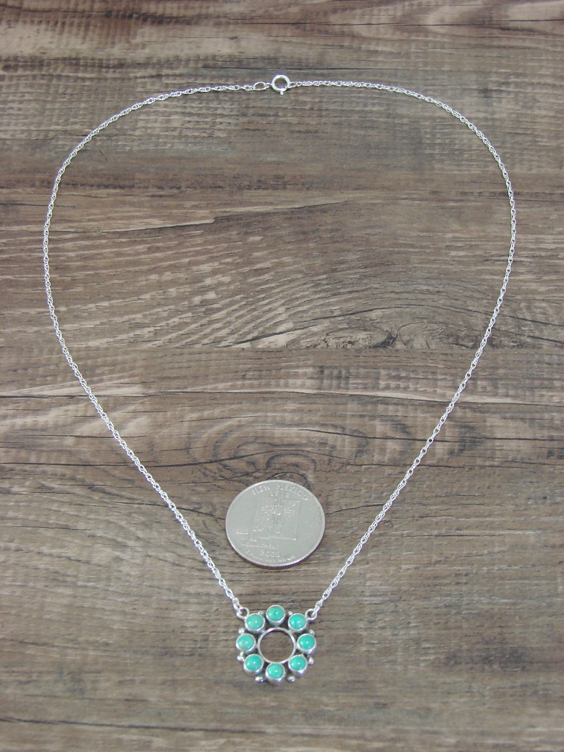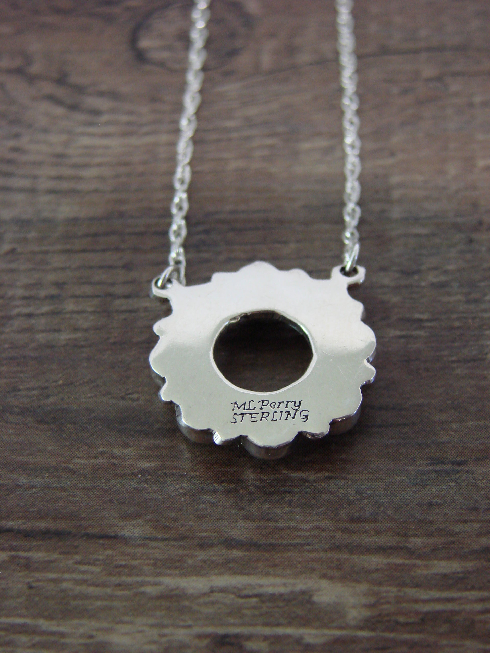 Genuine Native American Navajo Indian Sterling Silver & Turquoise Chain Necklace. This Stunning Hand Made necklace features a Genuine Turquoise Stones intricately set into smooth Sterling Silver bezel settings. Beautiful details in Sterling Silver surround the stone. Handmade by Navajo silversmith ML Perry. Hallmarked and Stamped "Sterling" on the back. Free gift box and shipping included!