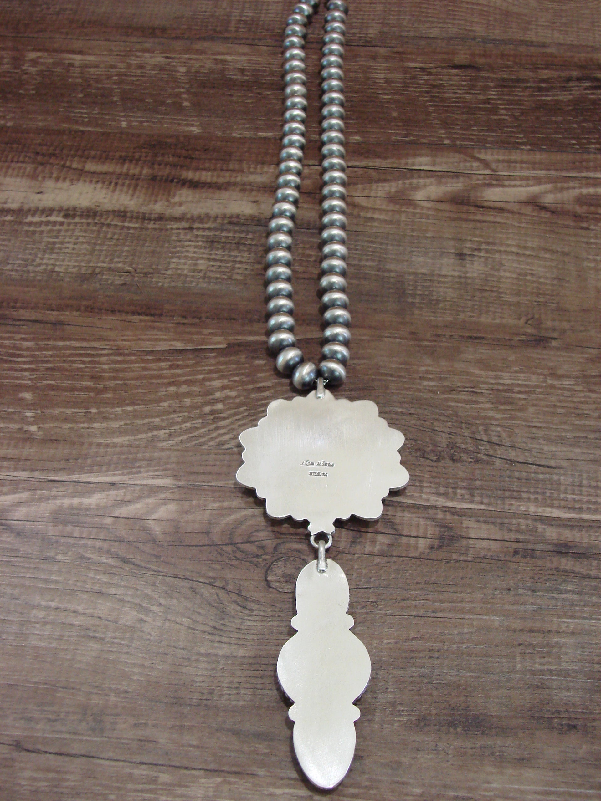 Necklace: 21" Navajo Pearl Length, Center Pendant: 5" x 2", 10mm Navajo Pearls