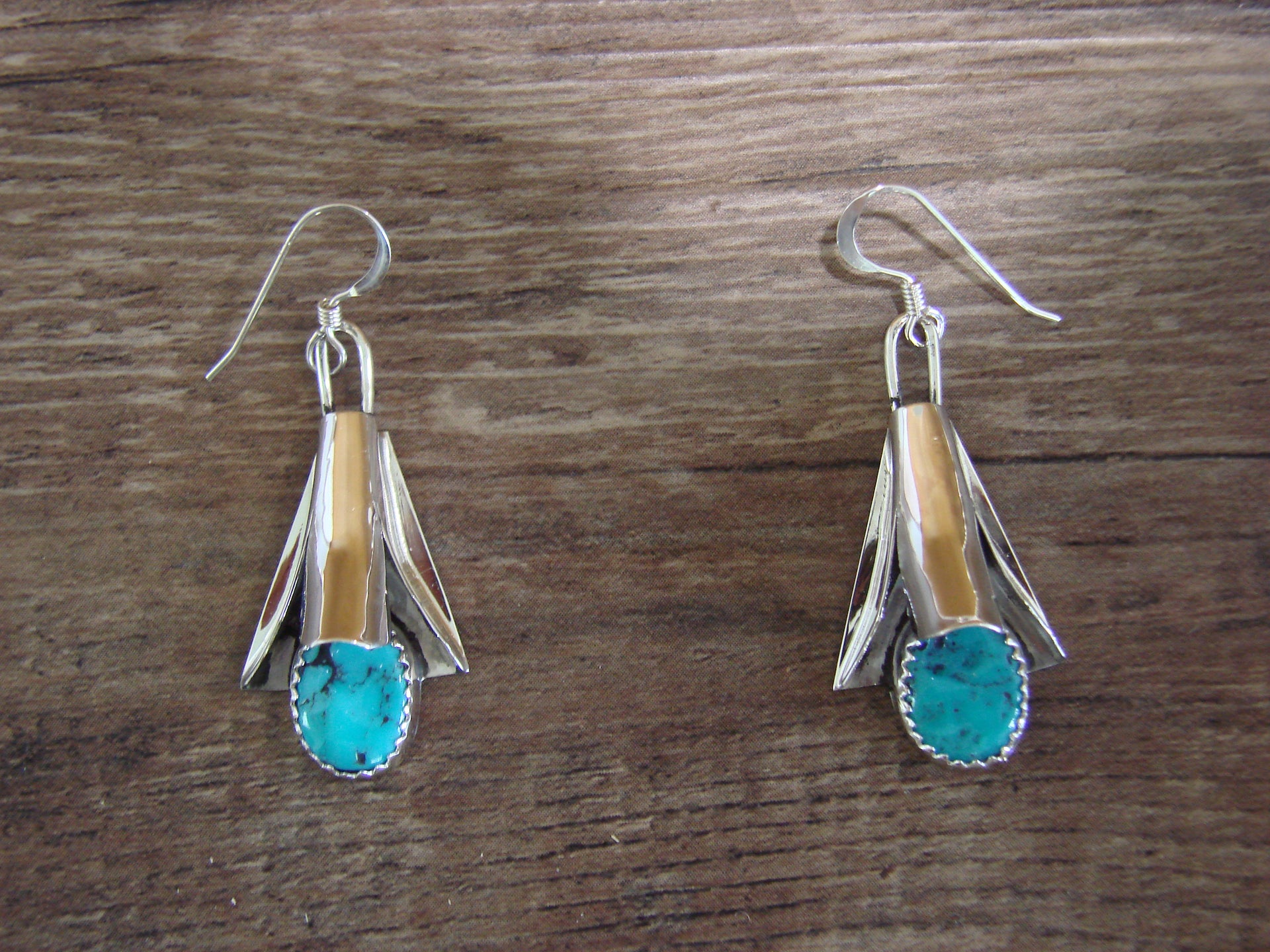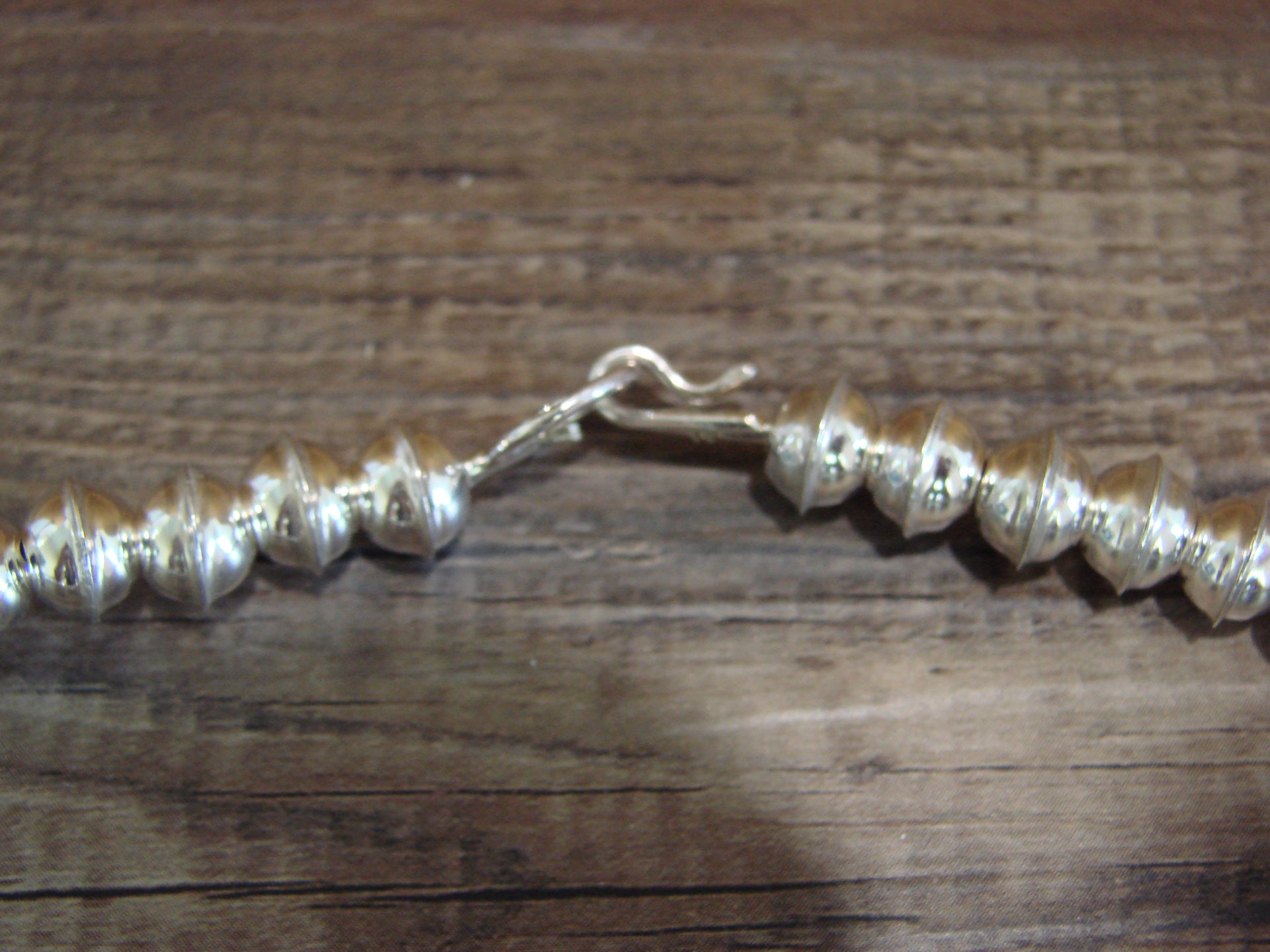 Genuine Native American Navajo Indian Sterling Silver Turquoise & Coral Squash Blossom Necklace and Earring Set from Western New Mexico. This traditional style Necklace features Stunning, Genuine Turquoise & Coral stones. Each Stone is beautifully set into a crown Sterling Silver bezel setting. Traditional style silversmith work and Navajo Pearls surround the Stones. With matching Turquoise Dangle earrings, this set is Gorgeous! Made to Perfection, this piece is a Handmade masterpiece! Handmade by Navajo Silversmith Louise Yazzie. Signed "LY" and Stamped "Sterling" on the back.