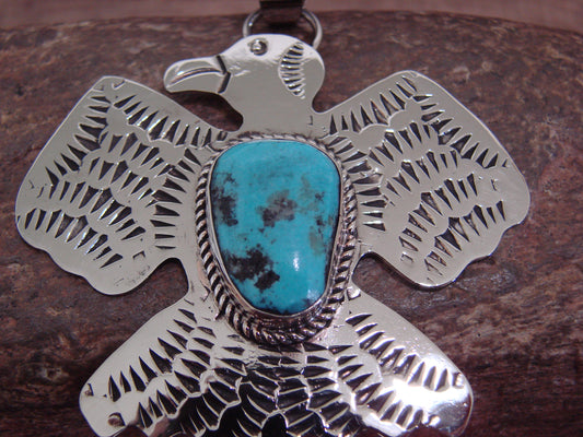 Native American Nickel Silver & Turquoise Thunderbird Pendant - Cleveland