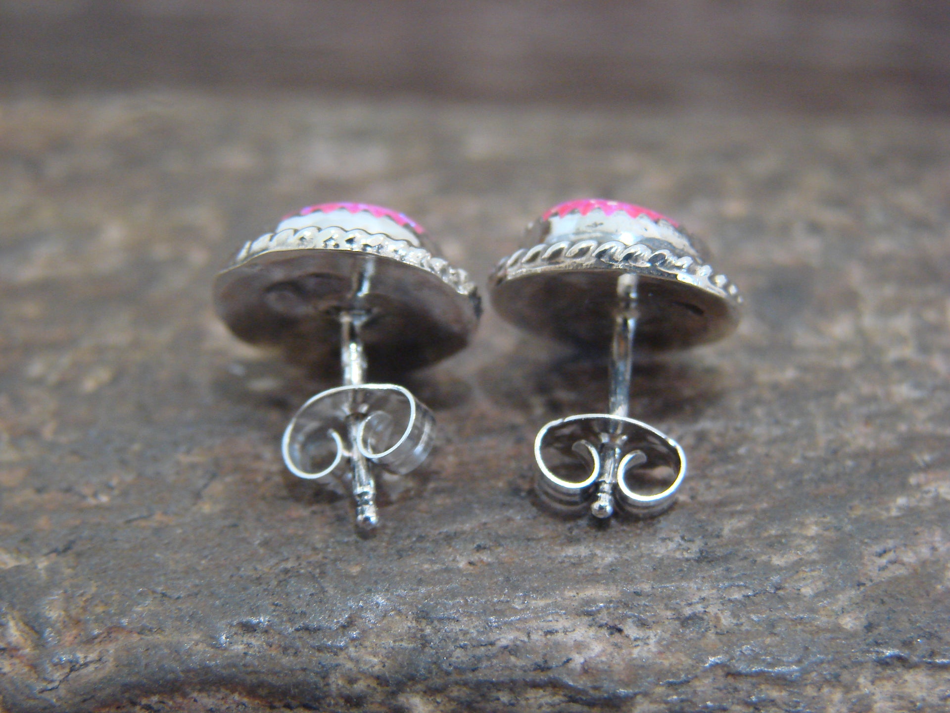 - Native American Sterling Silver & Pink Opal 7/16" Post Earrings - Esther White