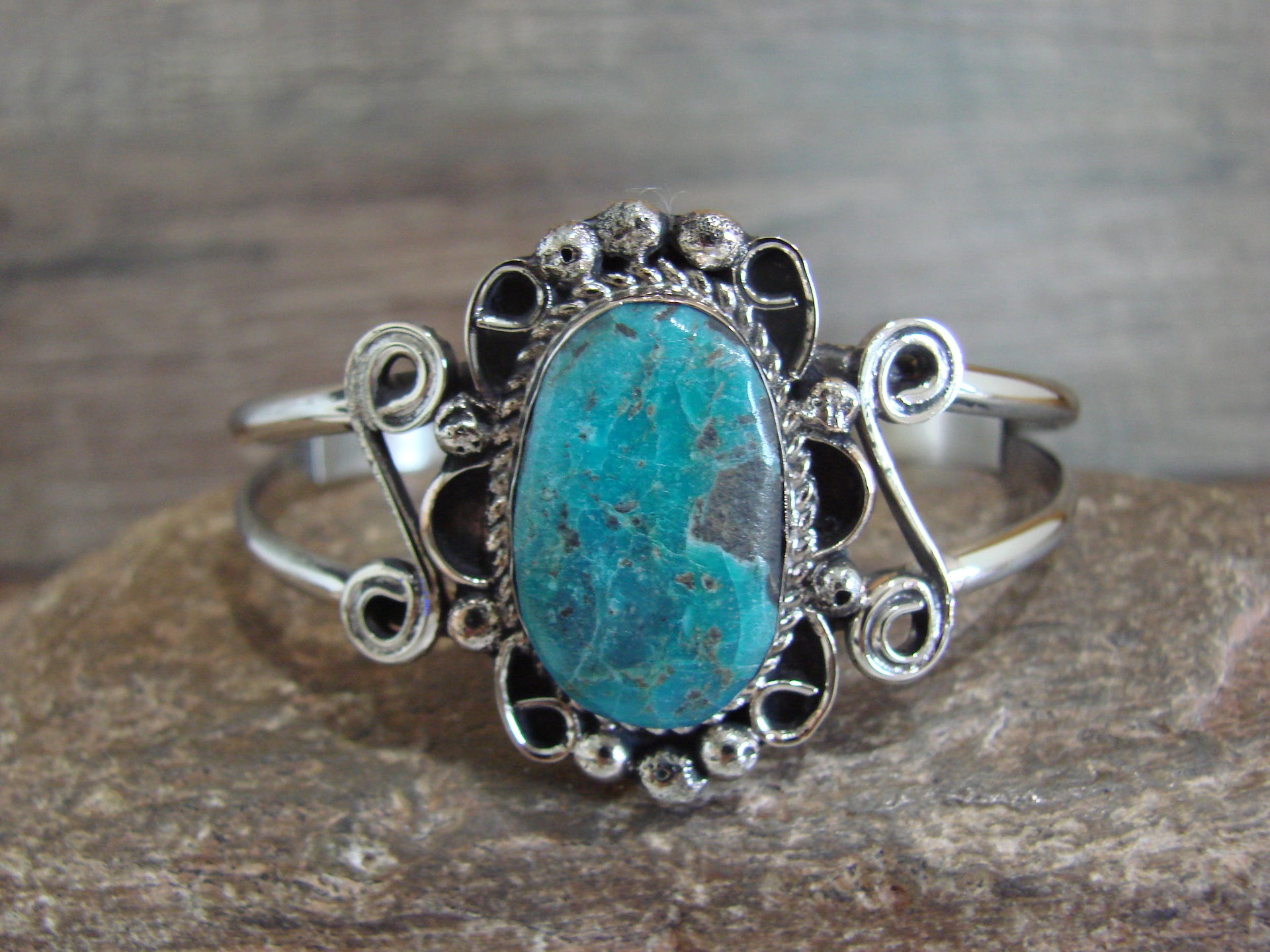 Native American Nickel Silver & Turquoise Bracelet by Cleveland