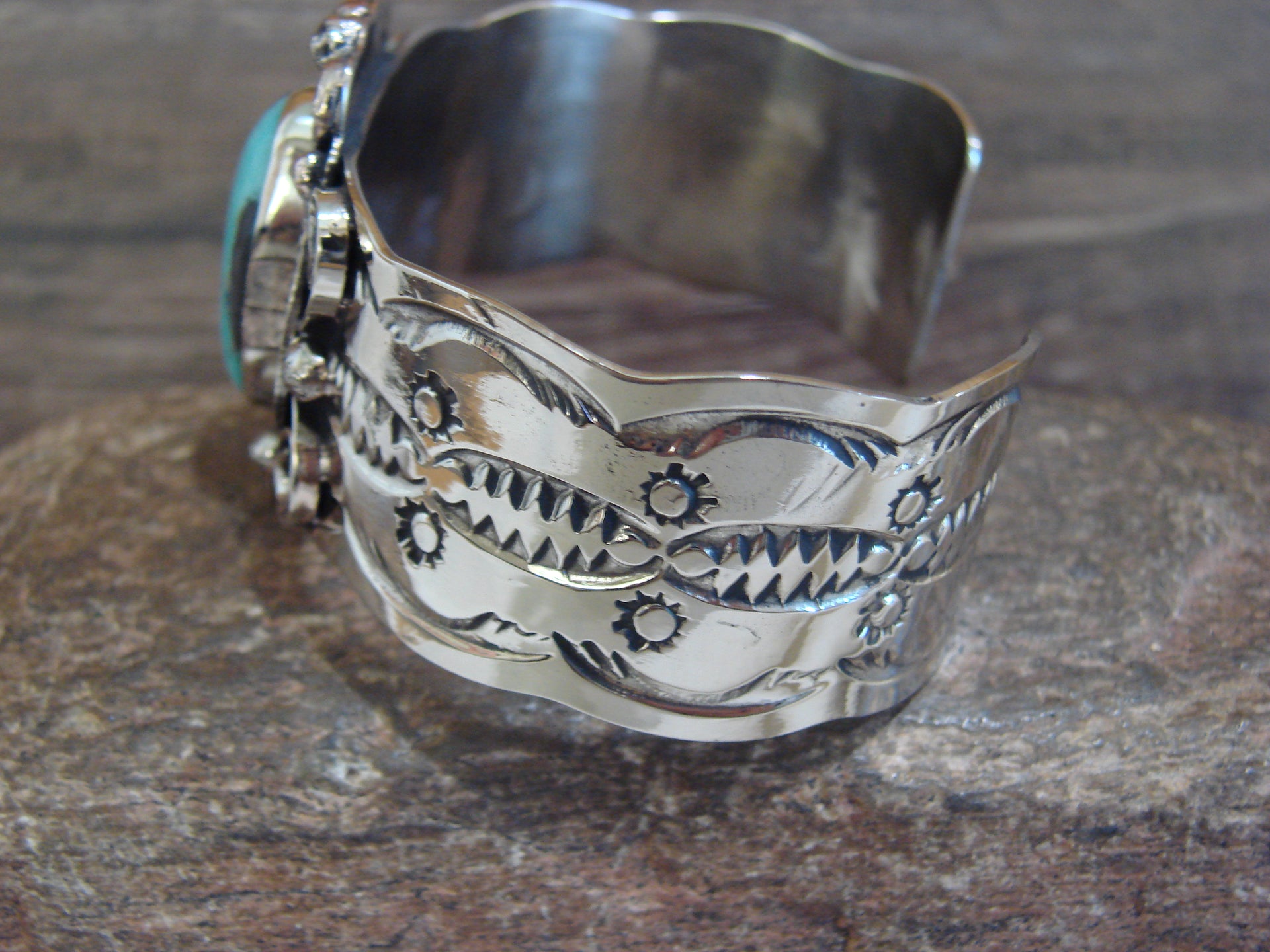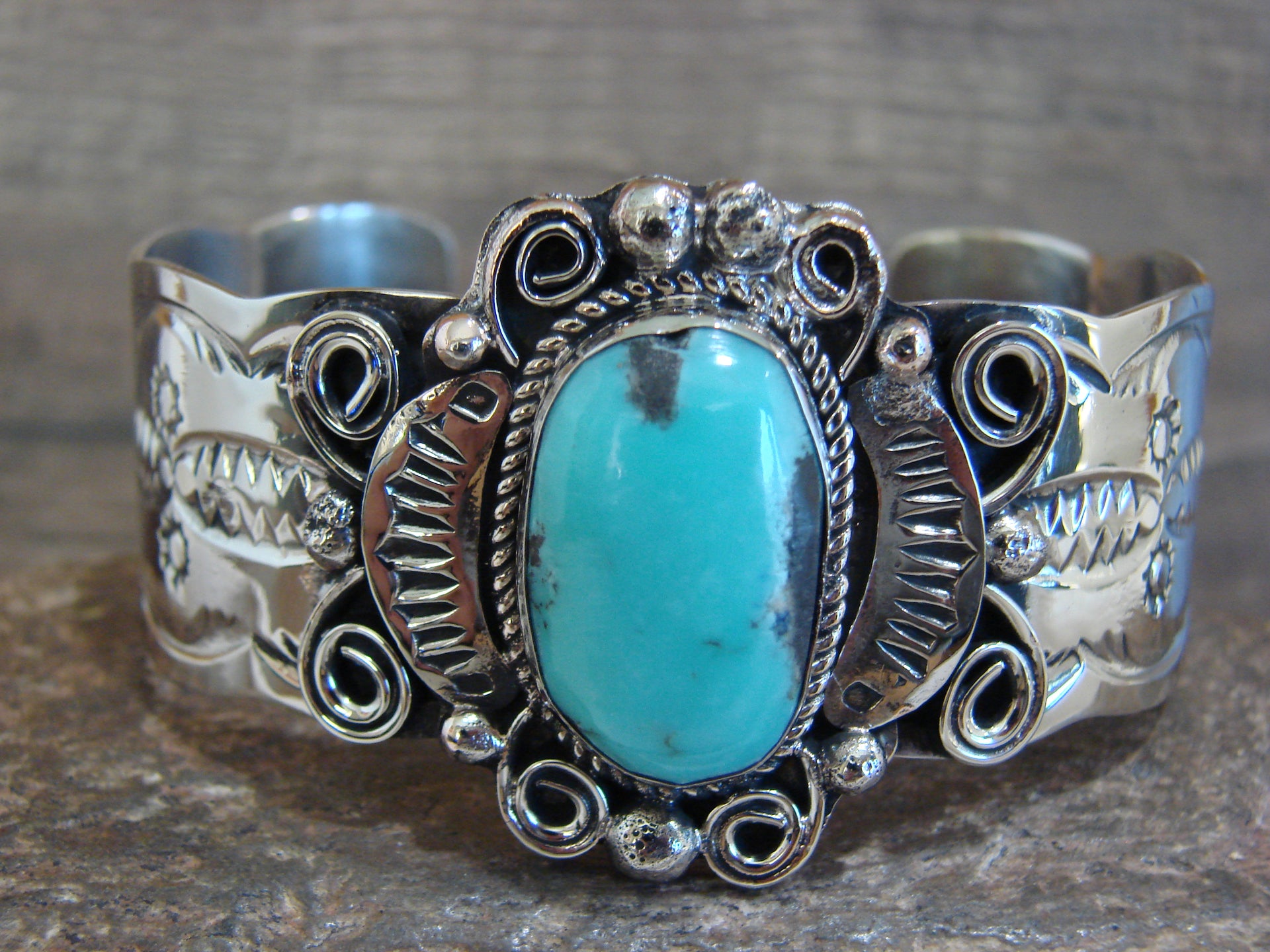 Native American Nickel Silver & Turquoise Bracelet by Cleveland