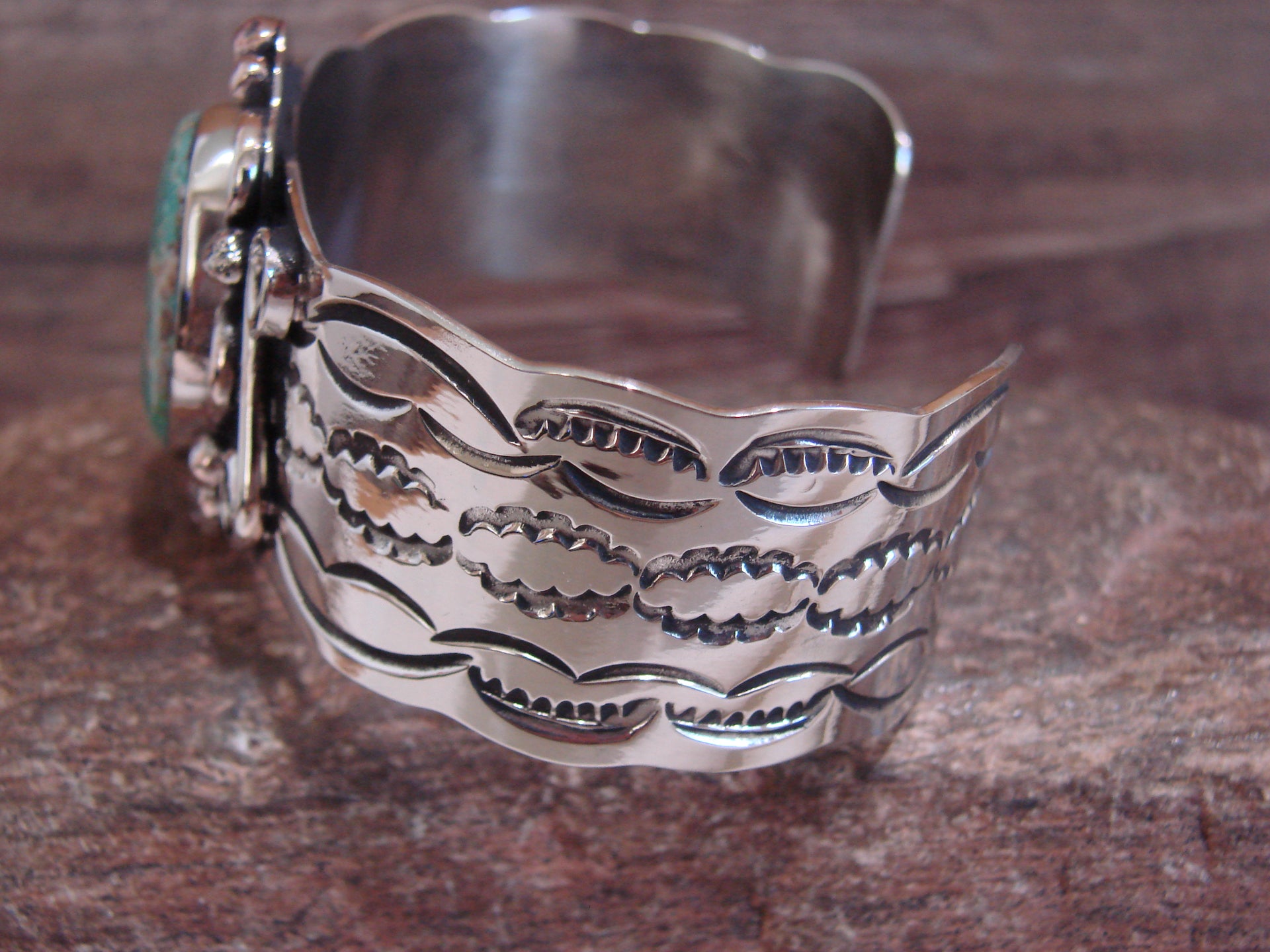 Native American Nickel Silver & Turquoise Bracelet by Cleveland