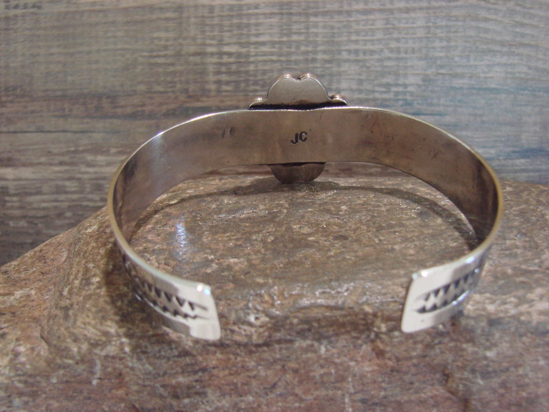 Measurements - 1" Tallest point, 1/2" Cuff, 6" Inside Circumference + 1 1/4" Opening, 7 1/4" Wrist