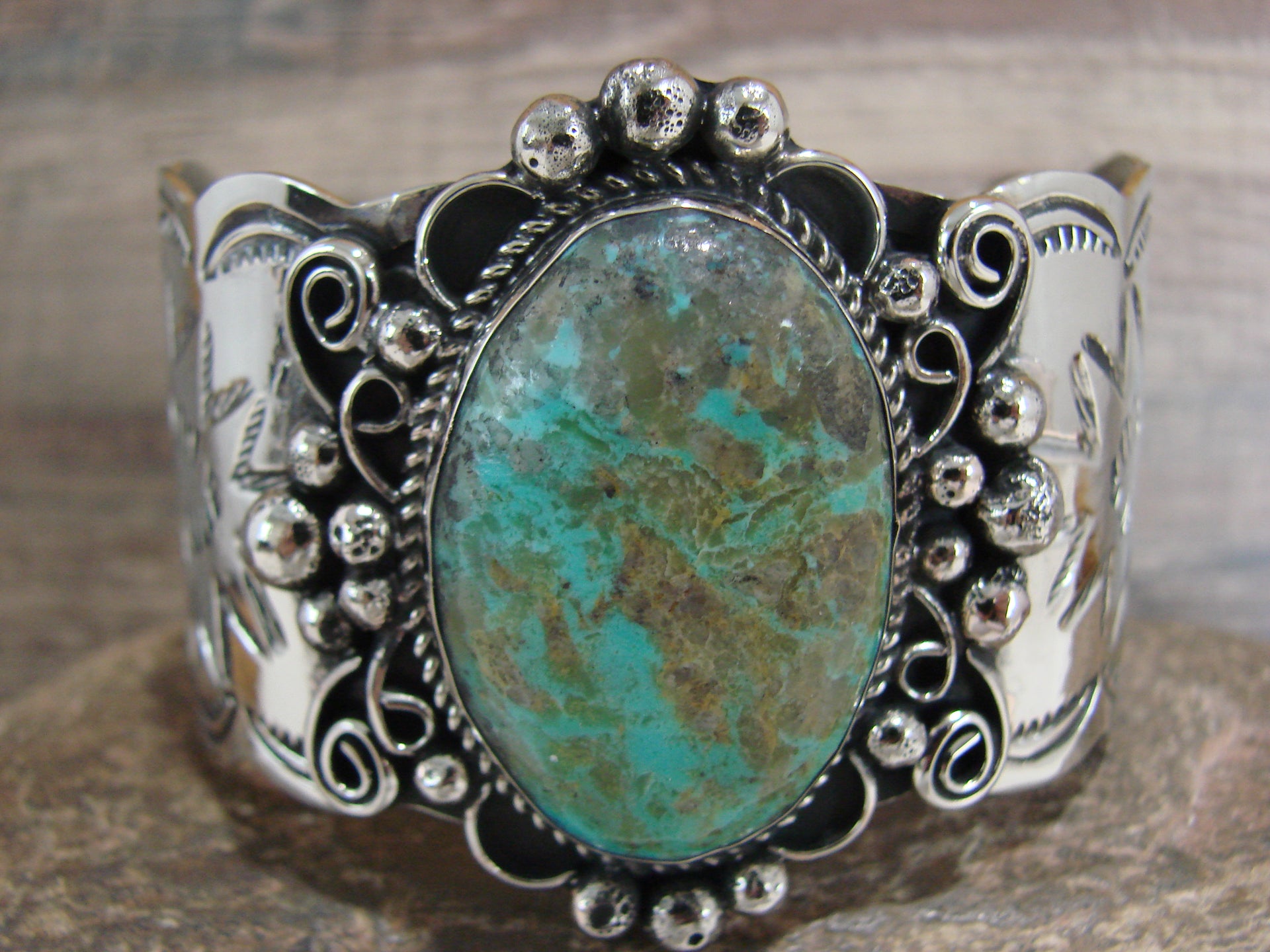 Navajo Indian Nickel Silver & Turquoise Bracelet by Cleveland