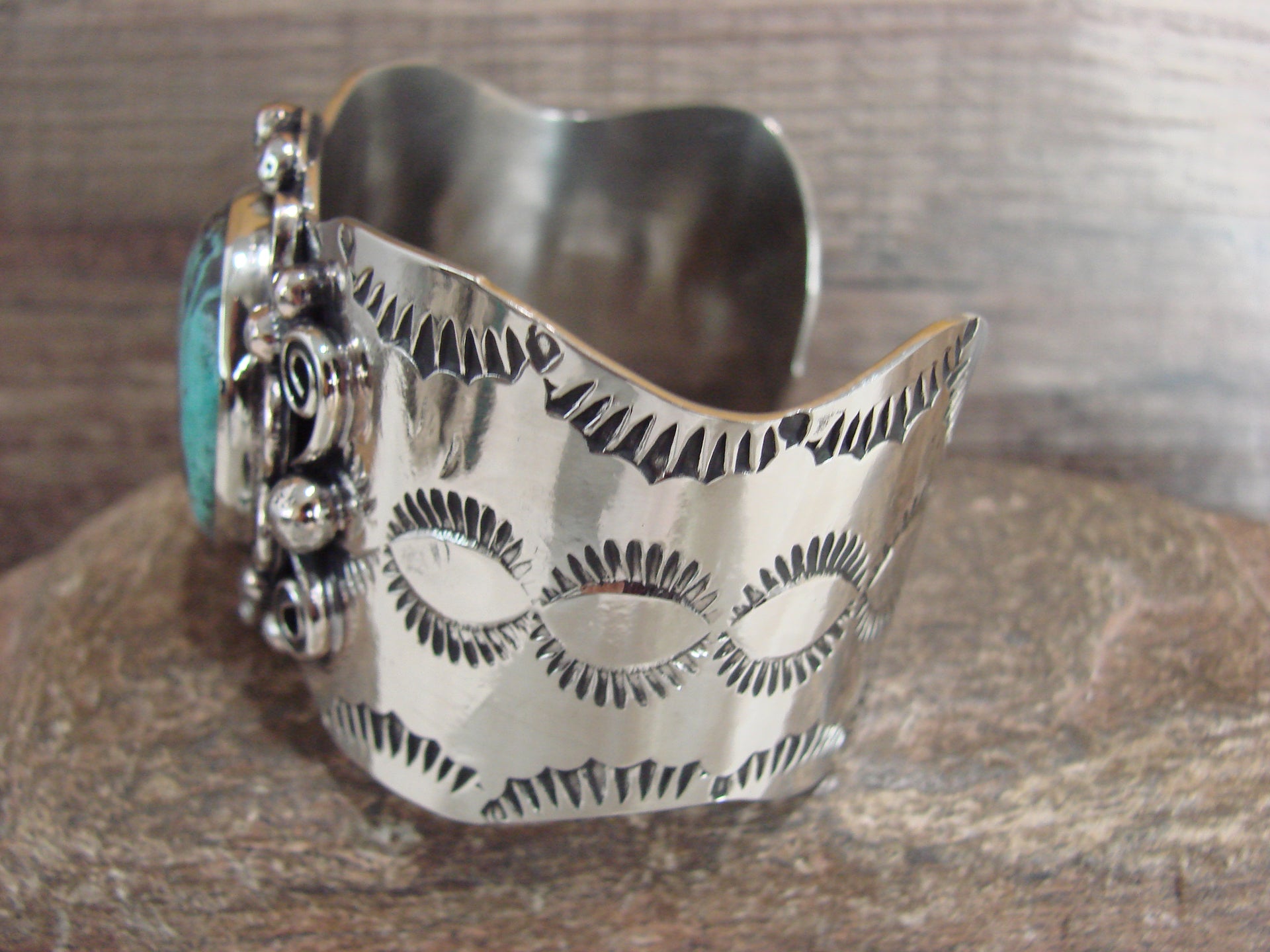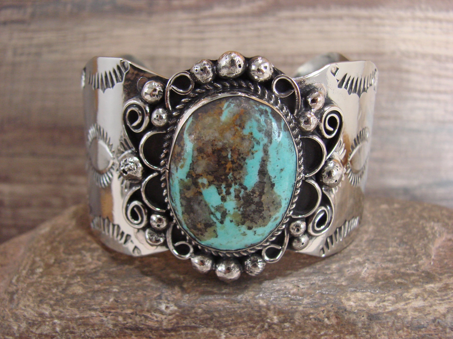Navajo Indian Nickel Silver & Turquoise Bracelet by Cleveland