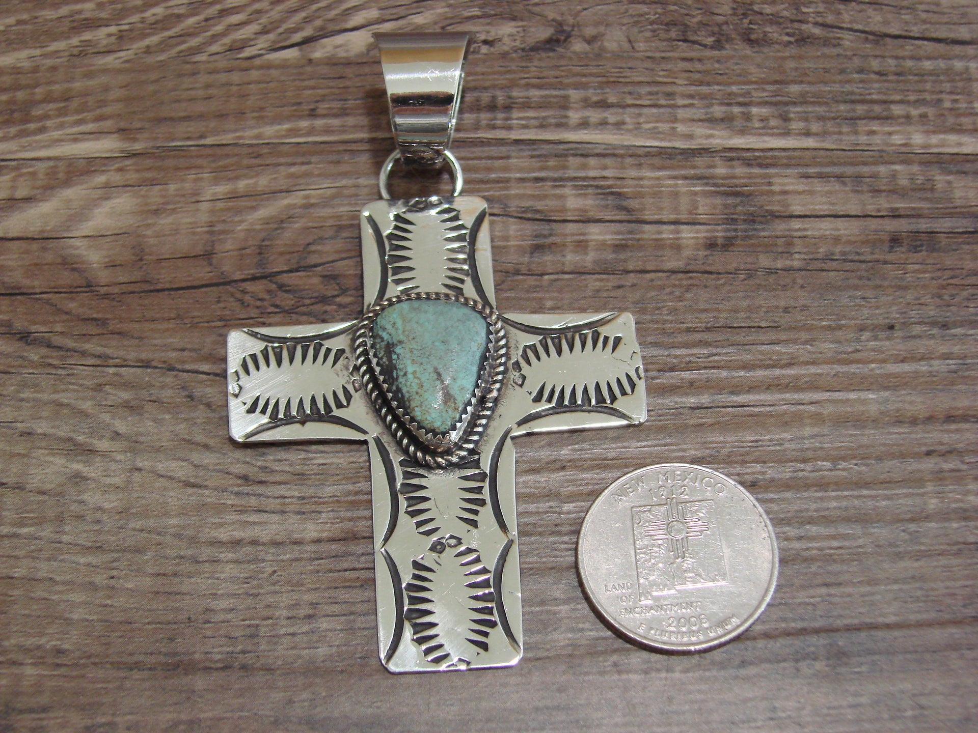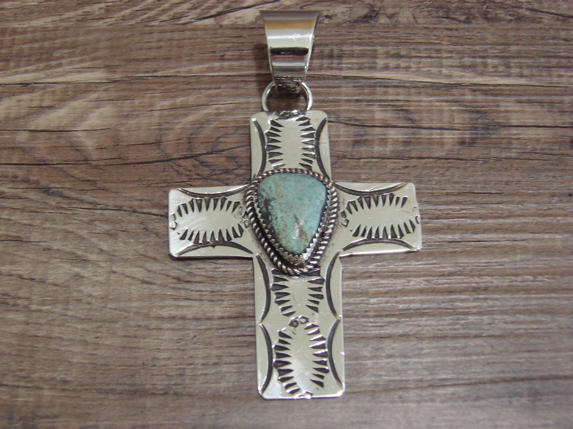 Large Navajo Nickel Silver & Turquoise Cross Pendant - Cleveland