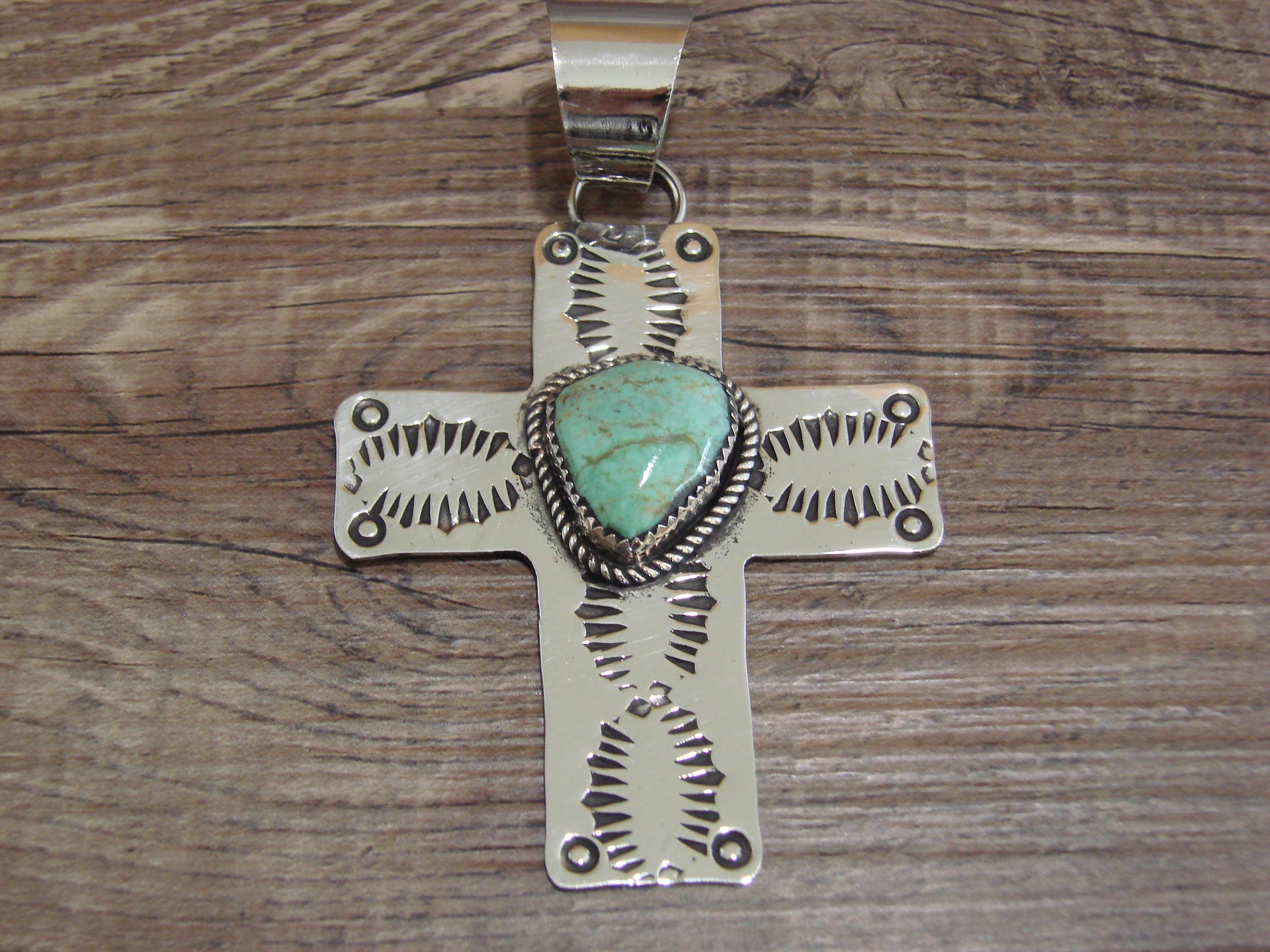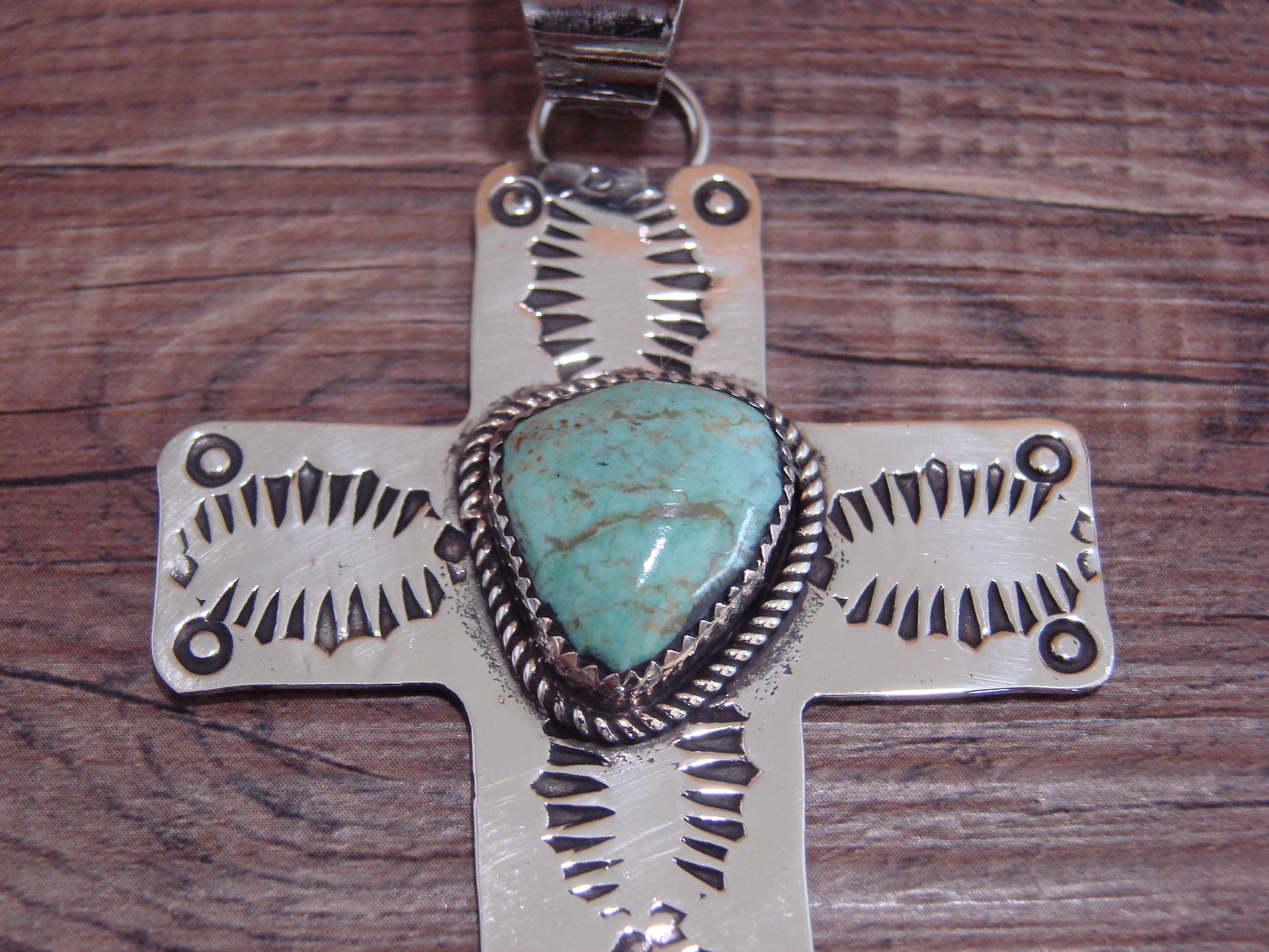 Large Navajo Nickel Silver & Turquoise Cross Pendant - Cleveland
