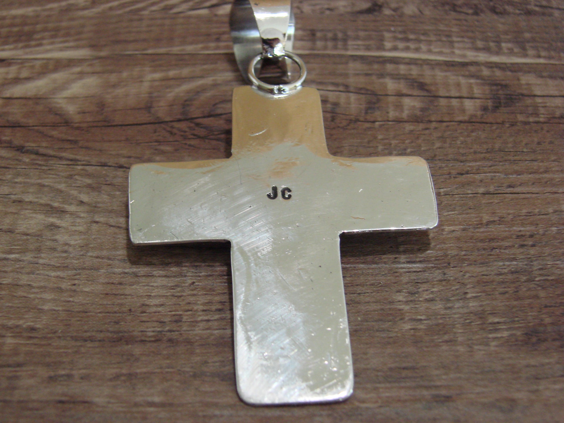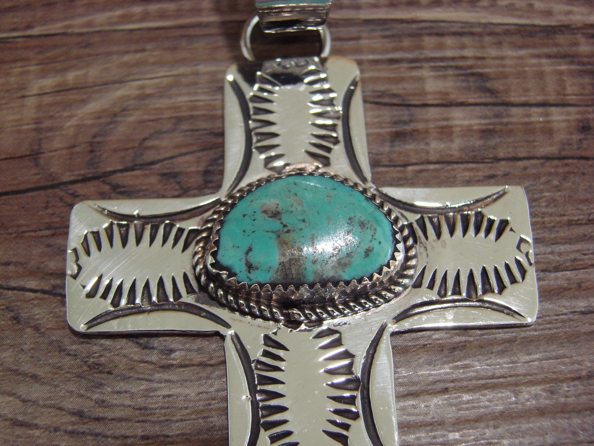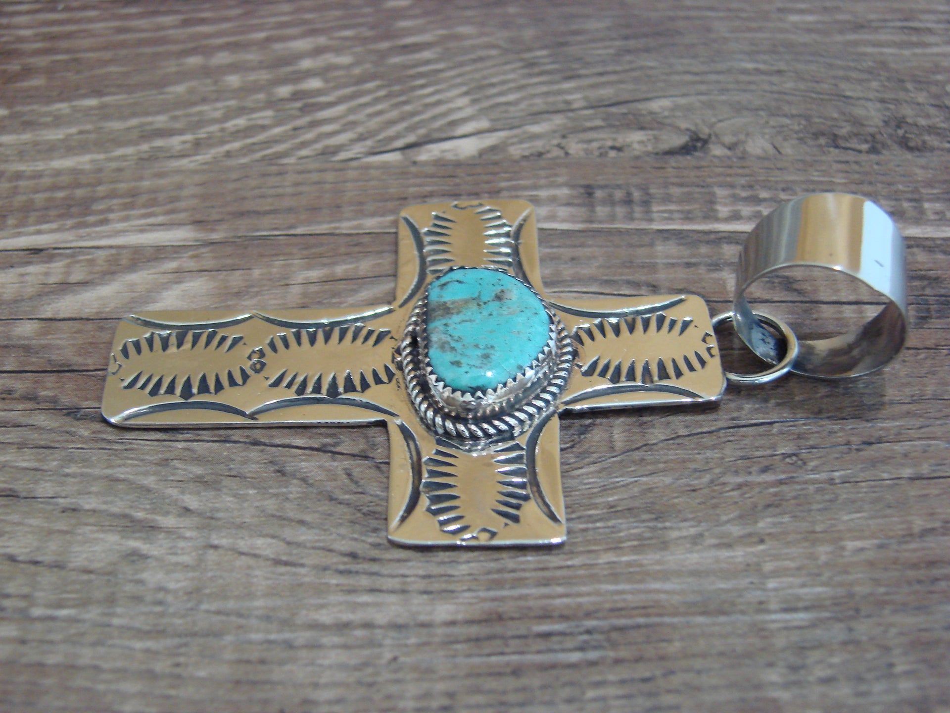 Large Navajo Nickel Silver & Turquoise Cross Pendant - Cleveland