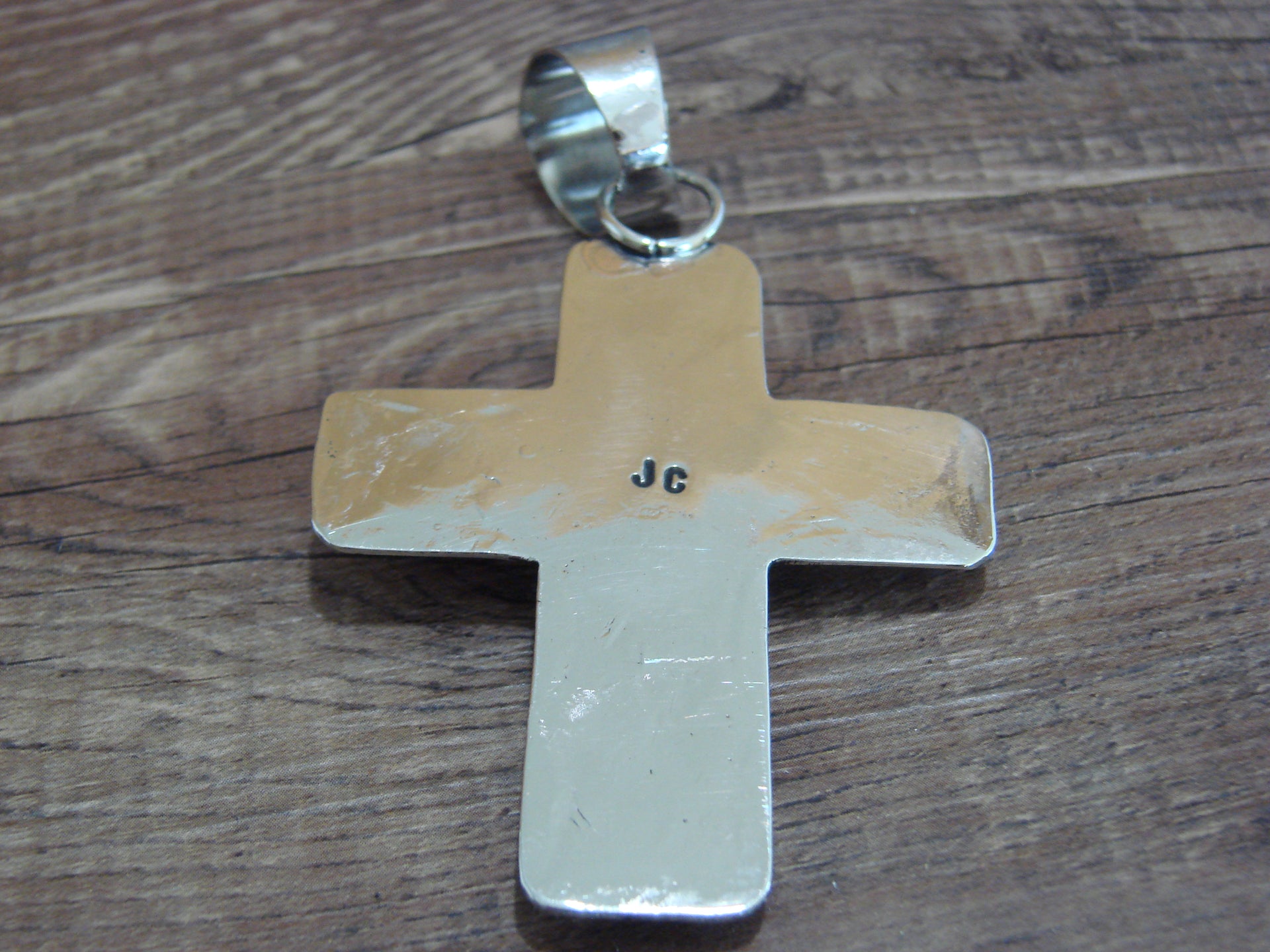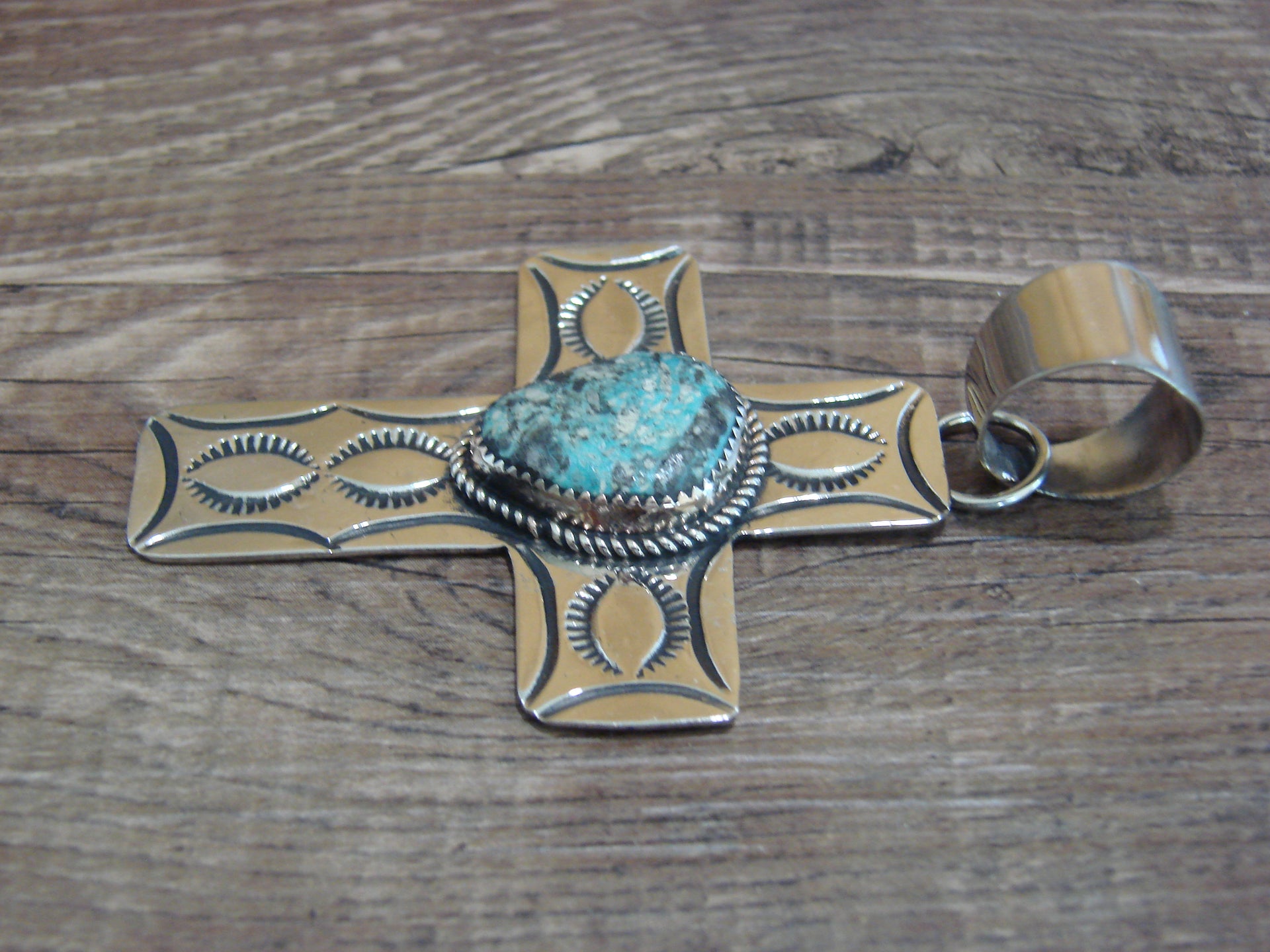 Large Navajo Nickel Silver & Turquoise Cross Pendant - Cleveland
