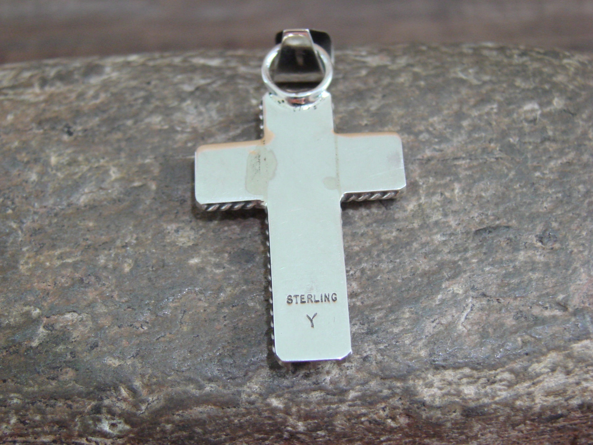 Native American Indian Sterling Silver Ribbed Cross Pendant by Yazzie