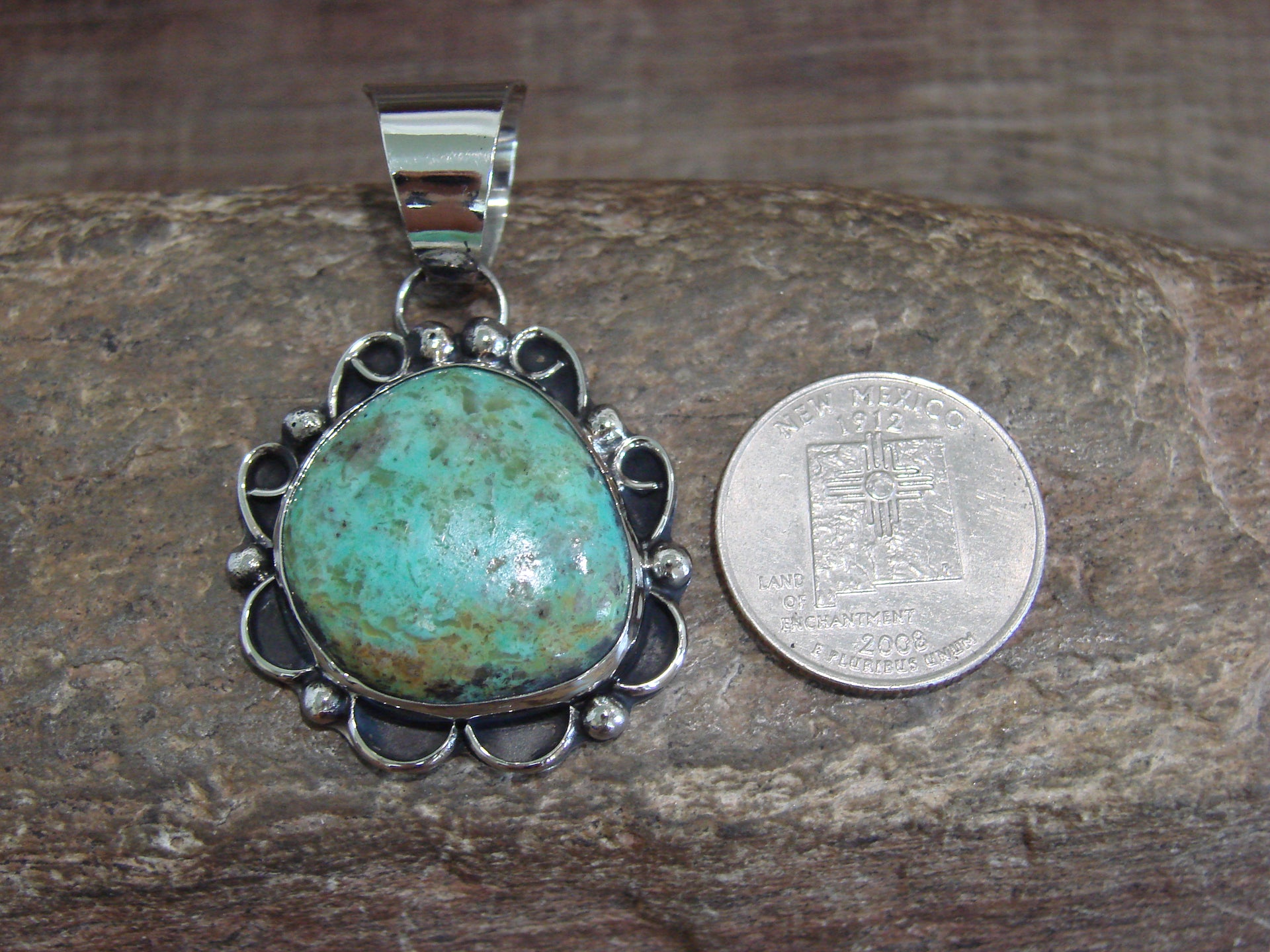 Native American Nickel Silver & Turquoise Pendant - Cleveland