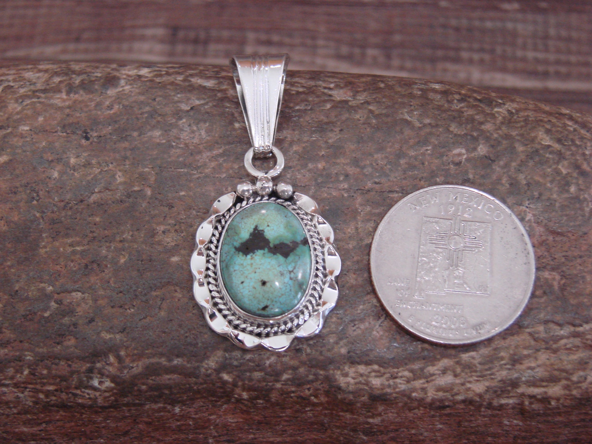 Native American Sterling Silver & Sonoran Turquoise Pendant by Yellowhair