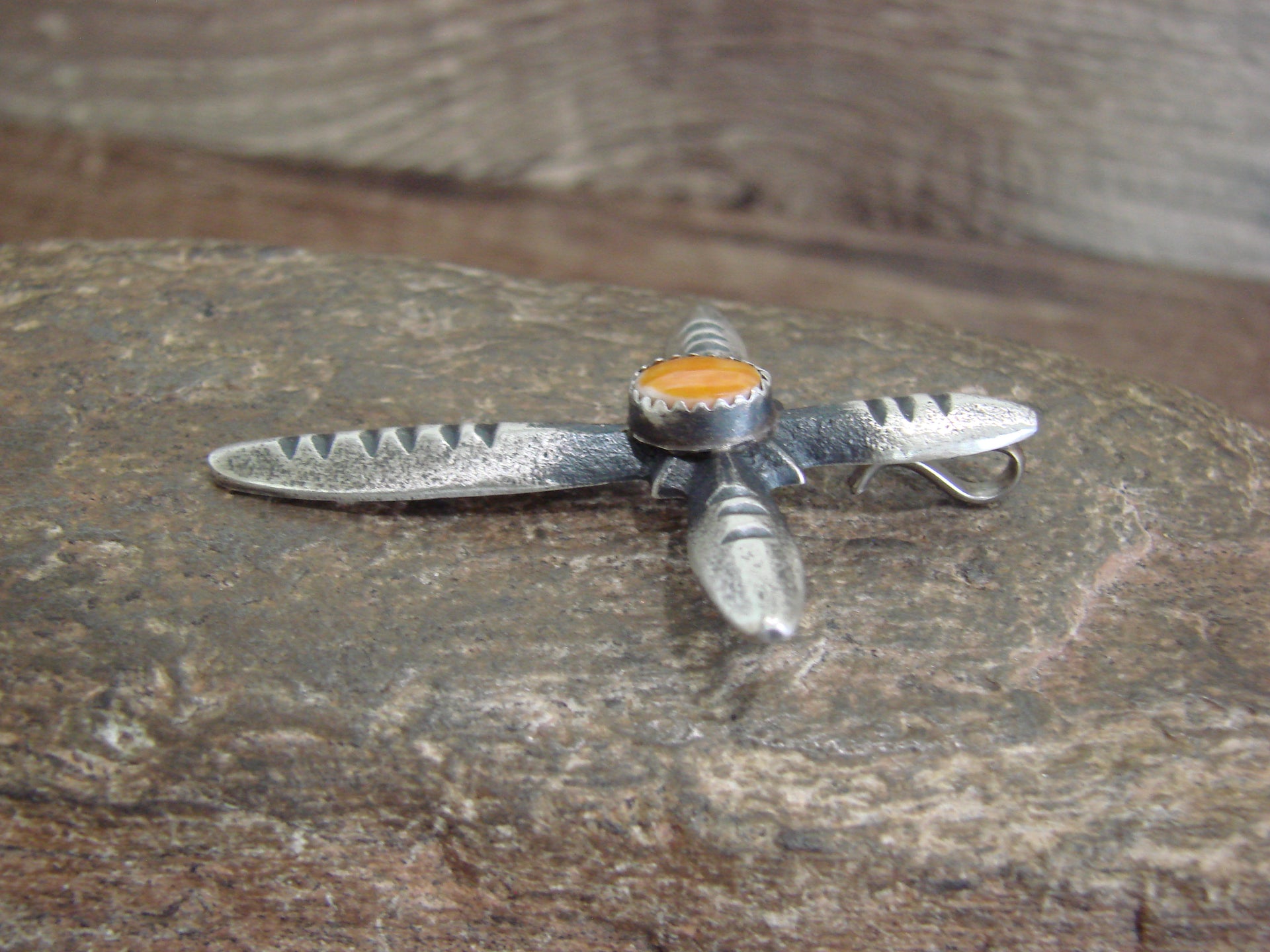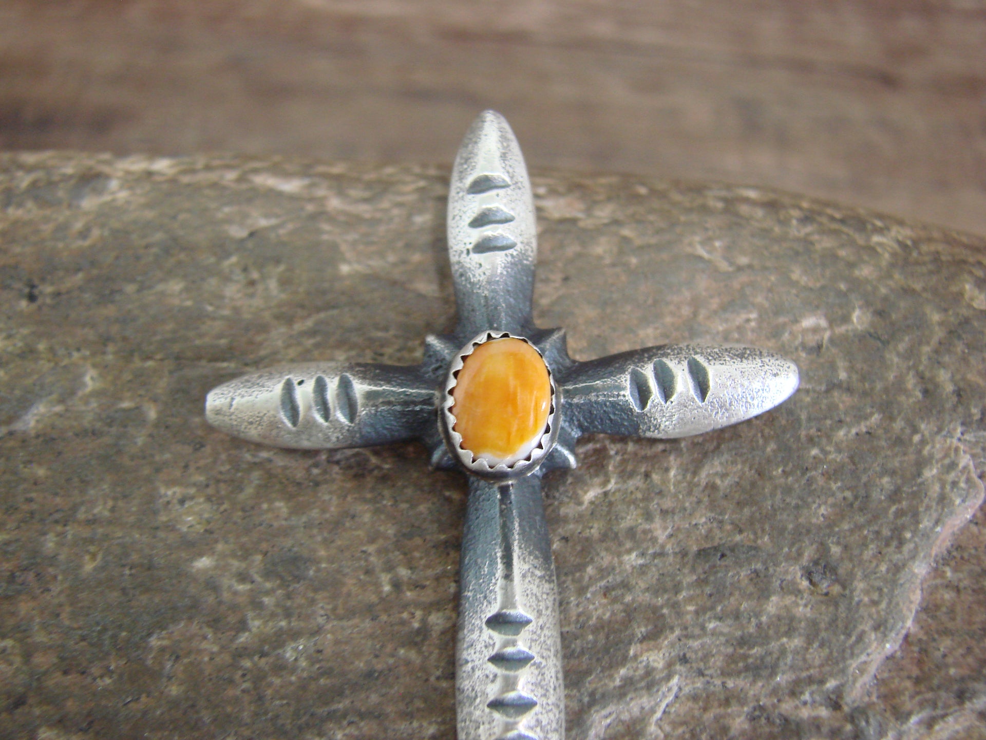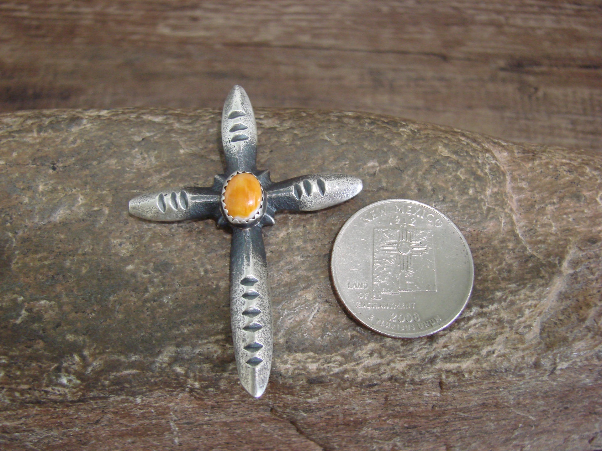 Native American Sterling Silver & Spiny Oyster Cross Pendant Signed Cayatineto