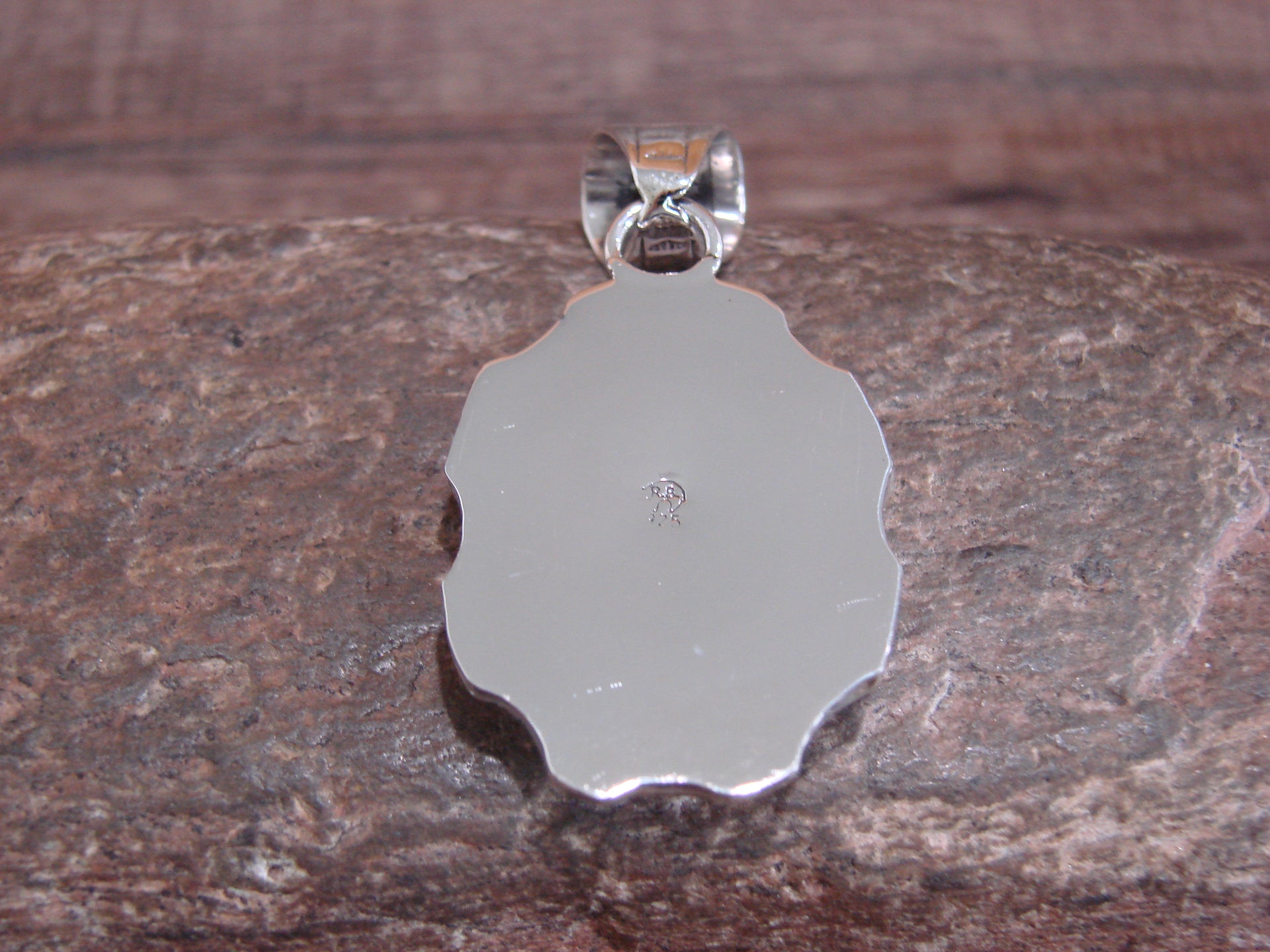 Genuine Native American Navajo Indian Sterling Silver & Turquoise Pendant from Western New Mexico. This Stunning pendant features a Genuine Turquoise stone intricately set into a crown Sterling Silver bezel setting. Beautiful Sterling Silver details and Hand Stamping surround the stone. Handmade by Navajo Artist Leroy Silversmith. Hallmarked on the back. Free gift box and shipping included!