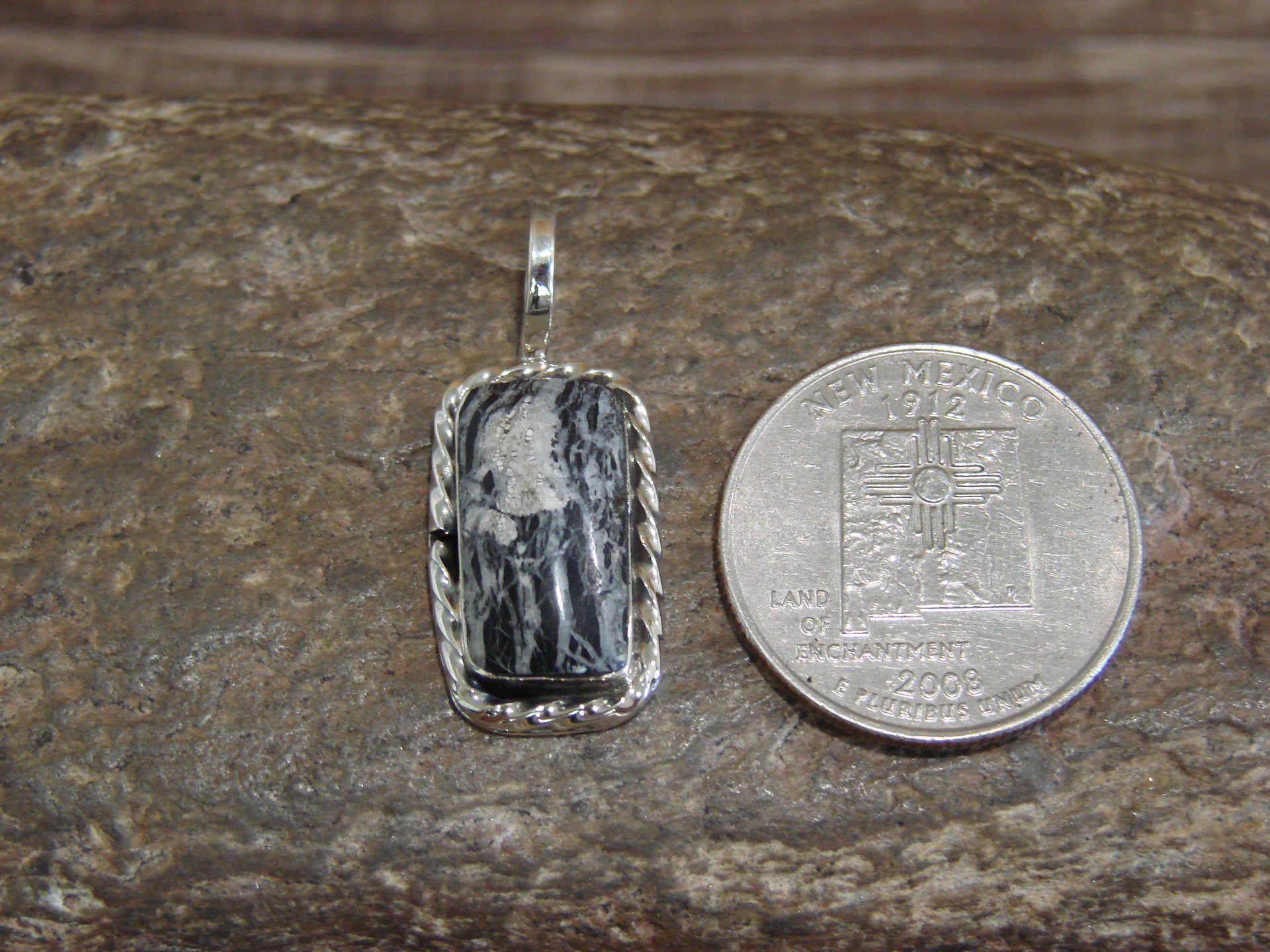 Native American Sterling Silver & White Buffalo Turquoise Pendant - Benally