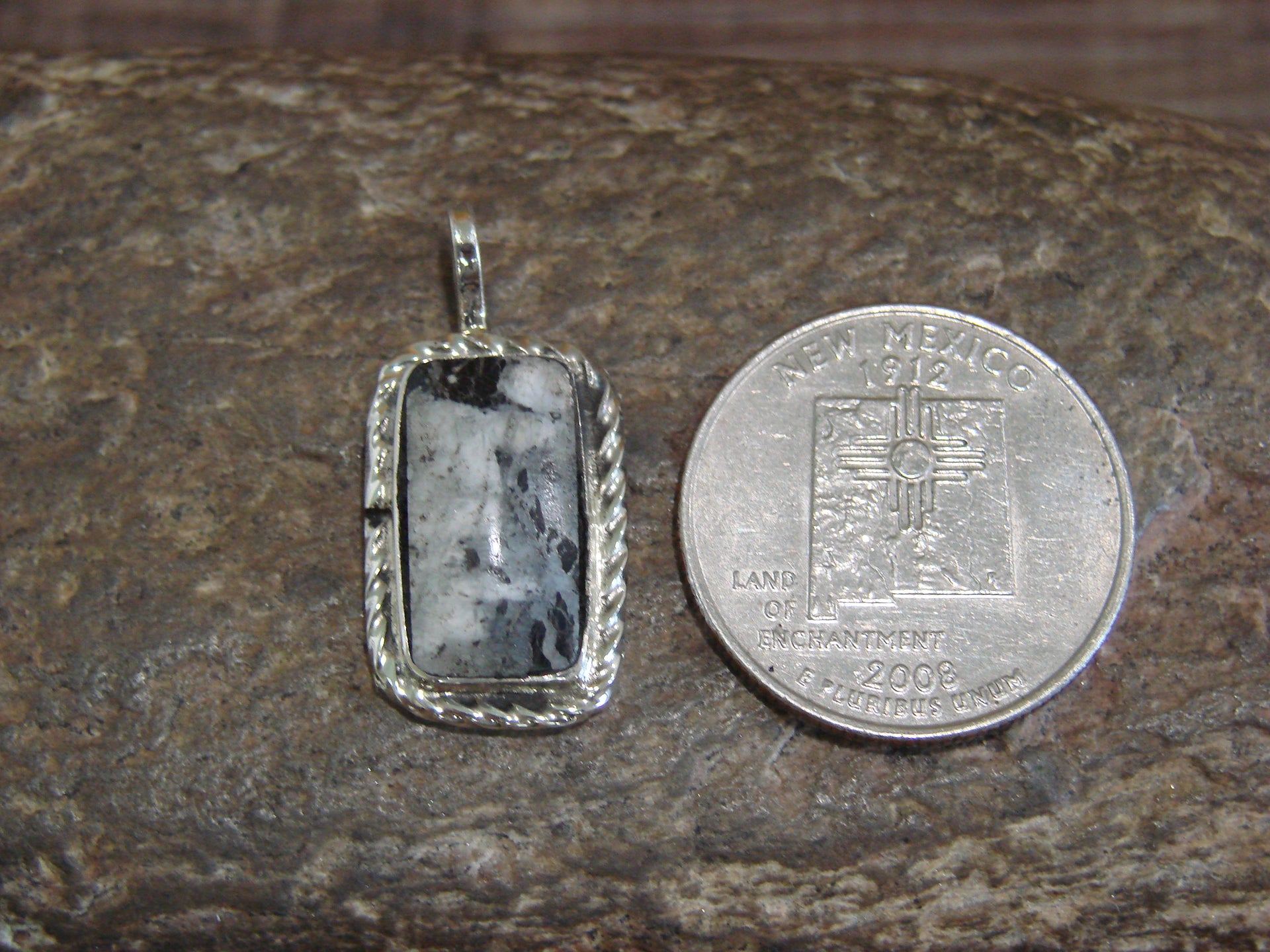 Native American Sterling Silver & White Buffalo Turquoise Pendant - Benally