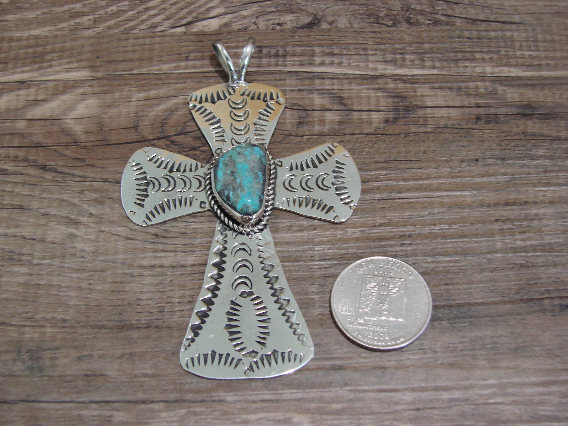 Navajo Indian Nickel Silver & Turquoise Cross Pendant - Cleveland
