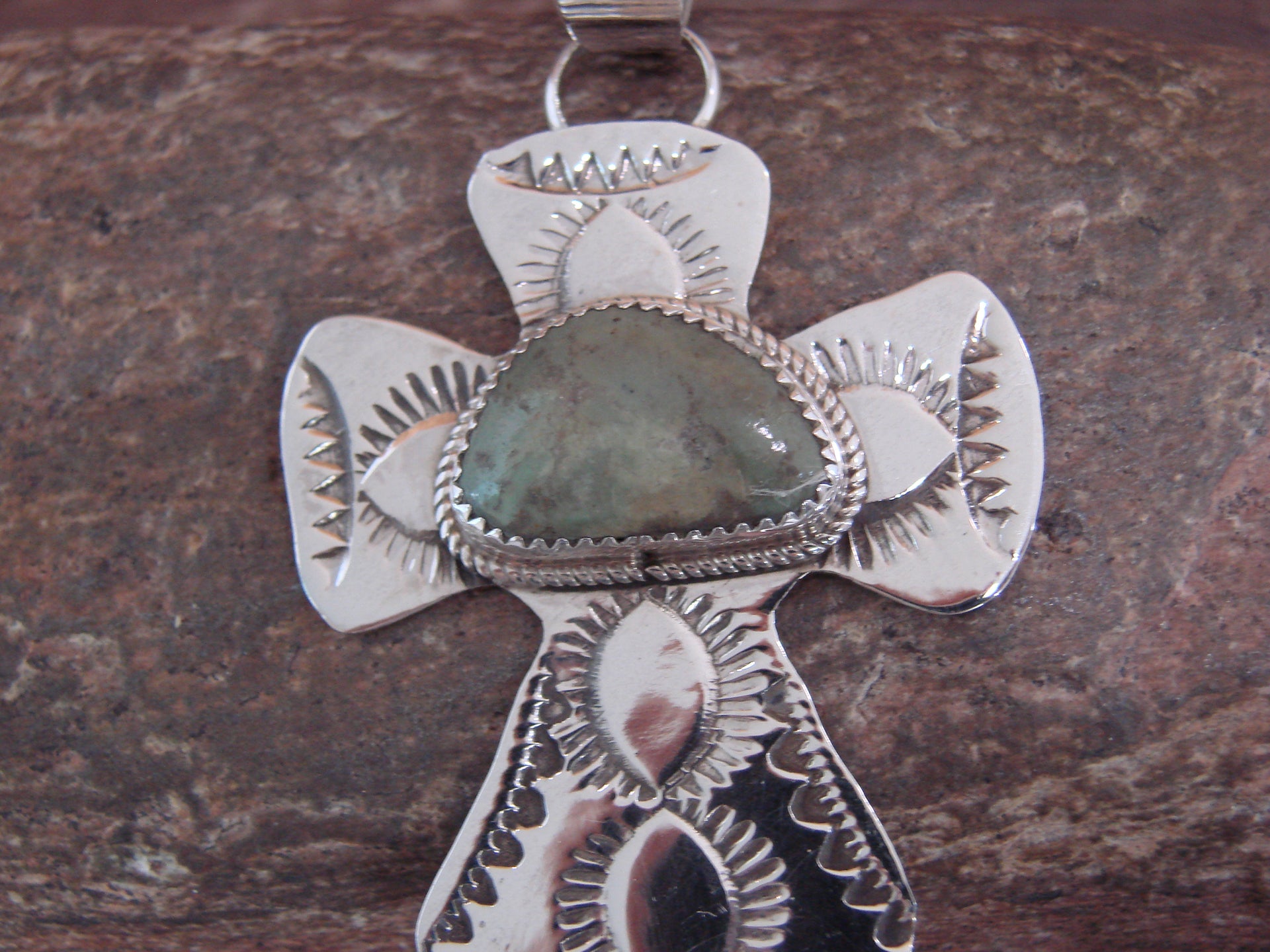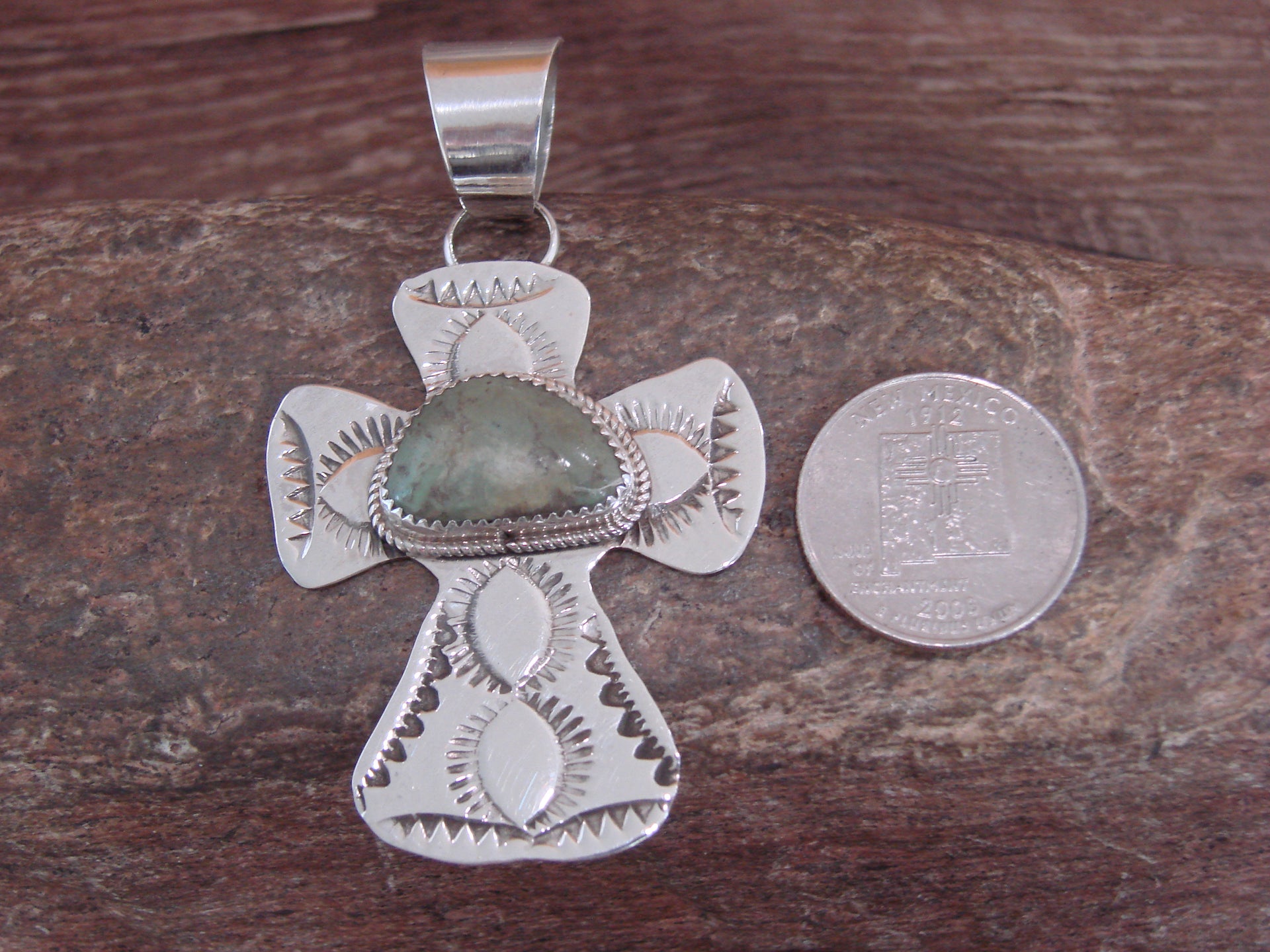 Navajo Indian Sterling Silver & Turquoise Cross Pendant Signed Cleveland
