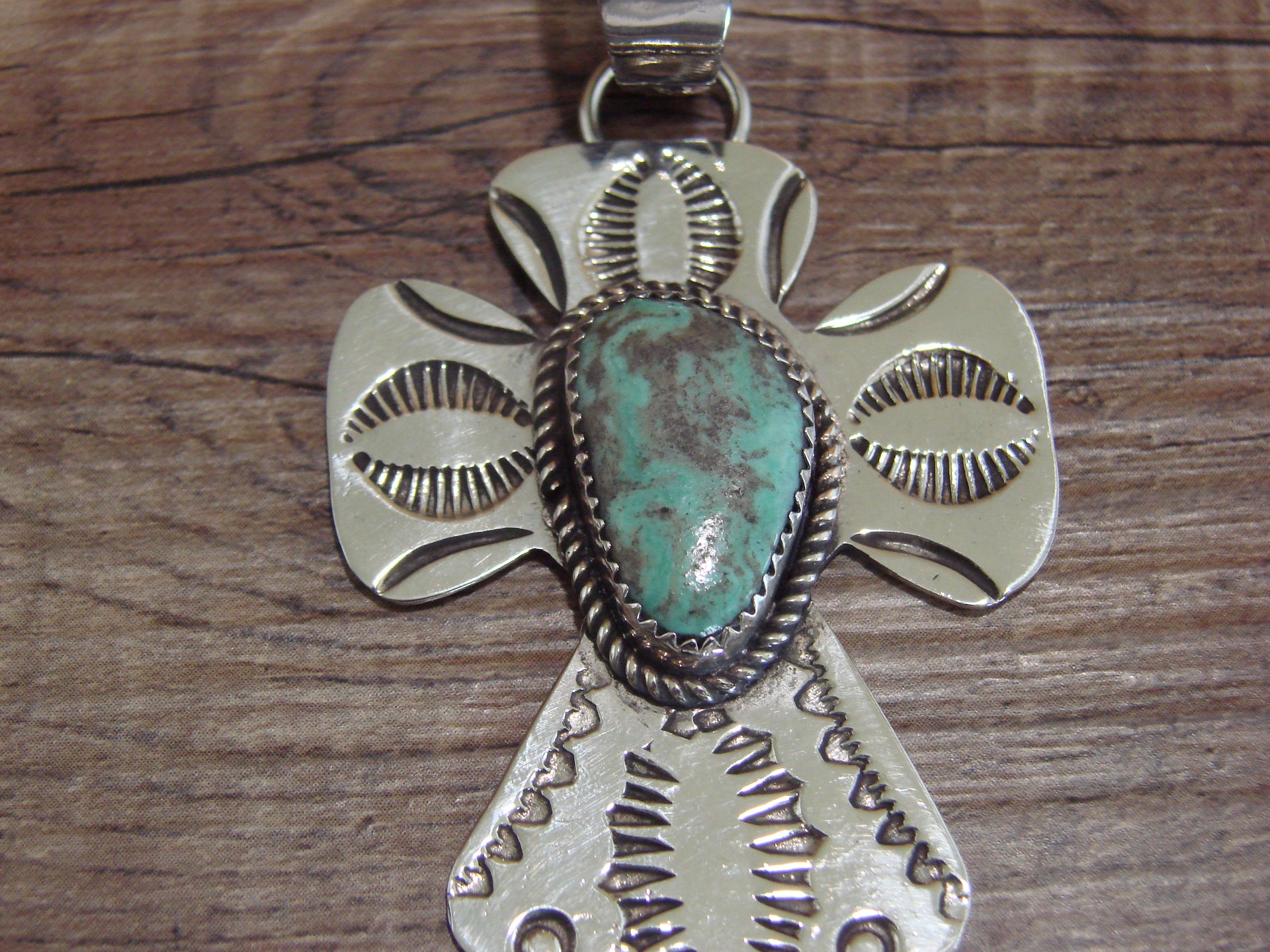 Navajo Nickel Silver & Turquoise Cross Pendant - Cleveland