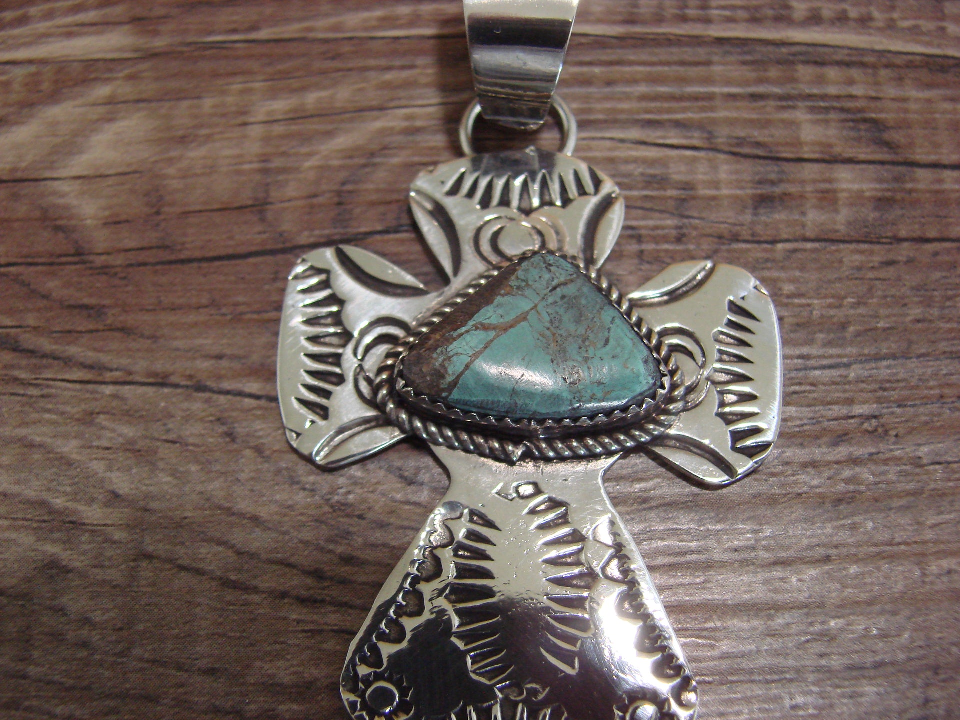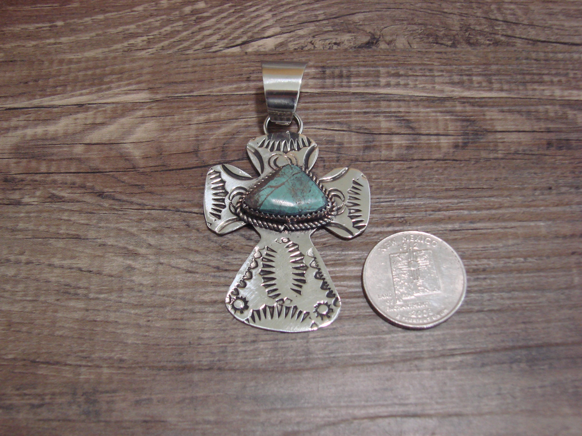 Navajo Nickel Silver & Turquoise Cross Pendant - Cleveland
