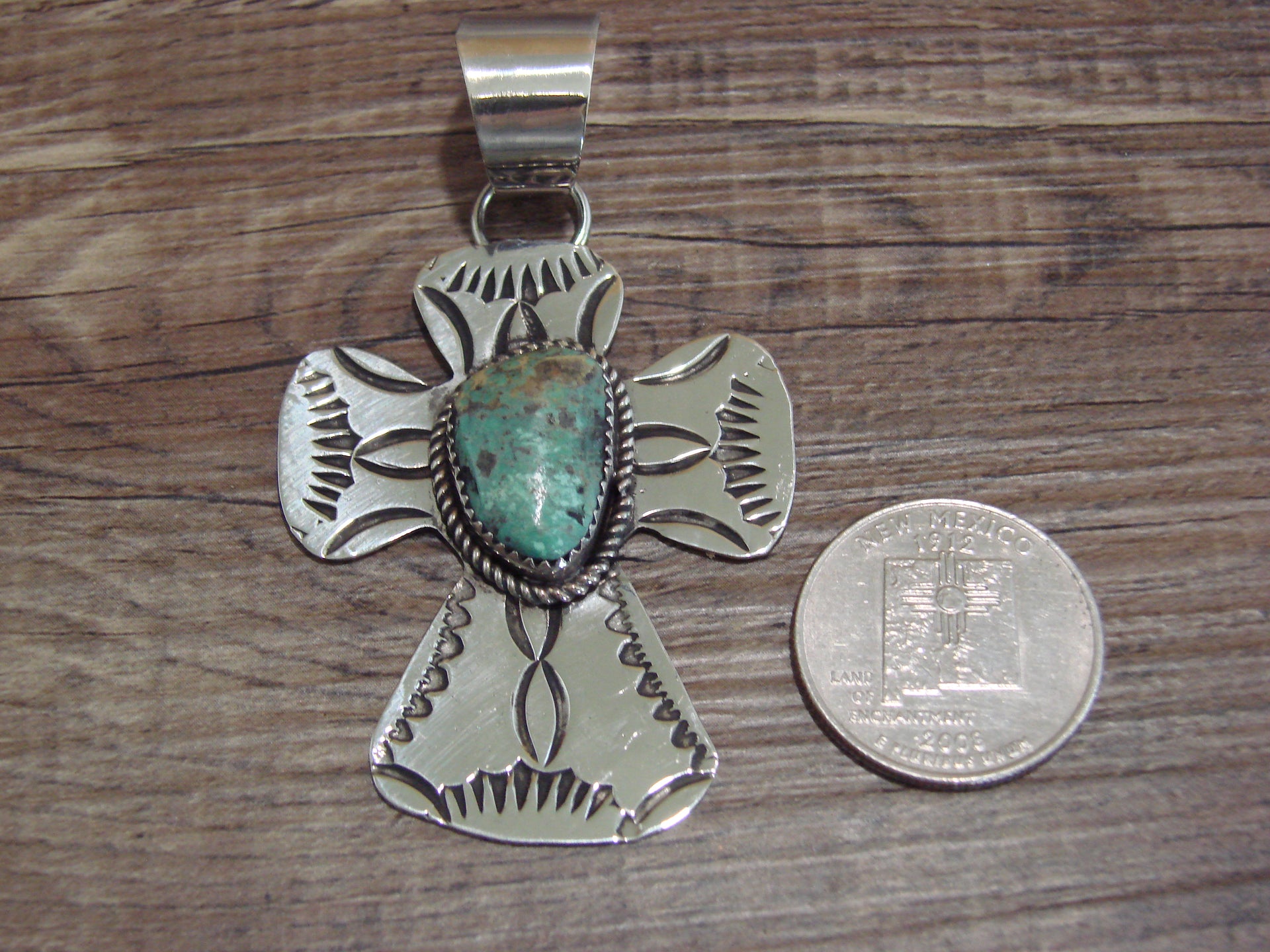 Navajo Nickel Silver & Turquoise Cross Pendant - Cleveland