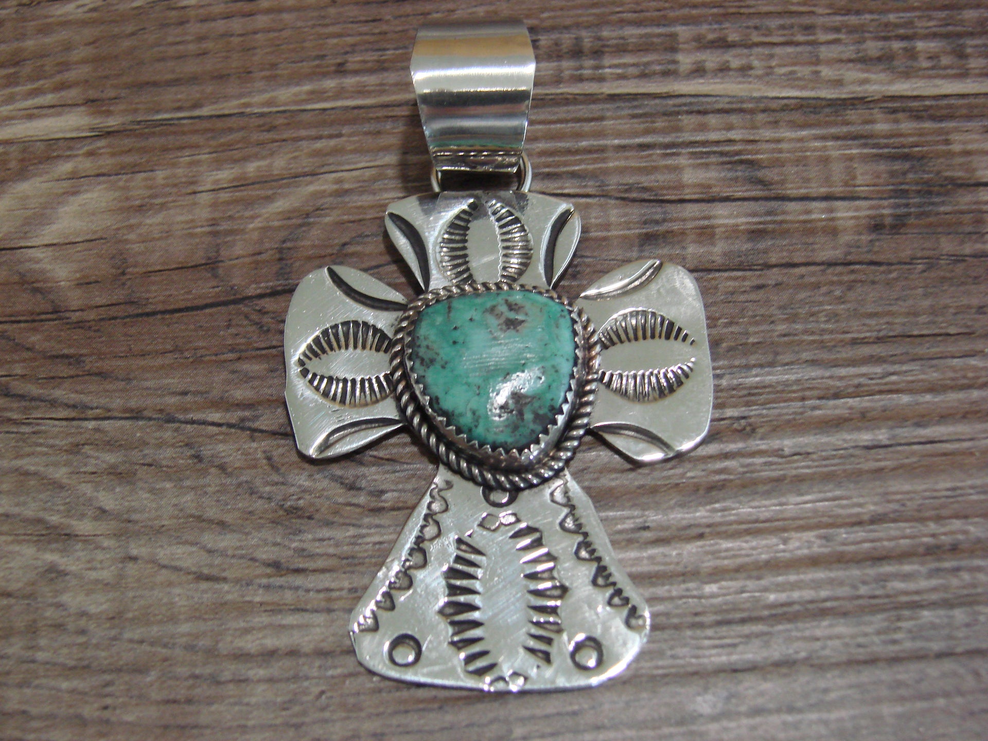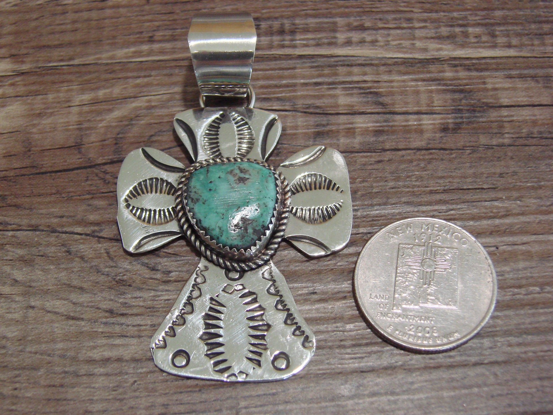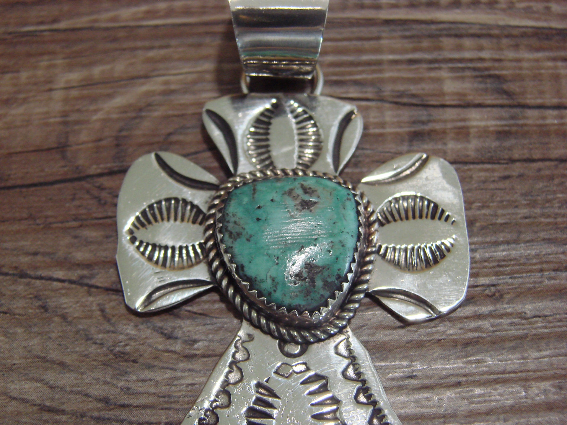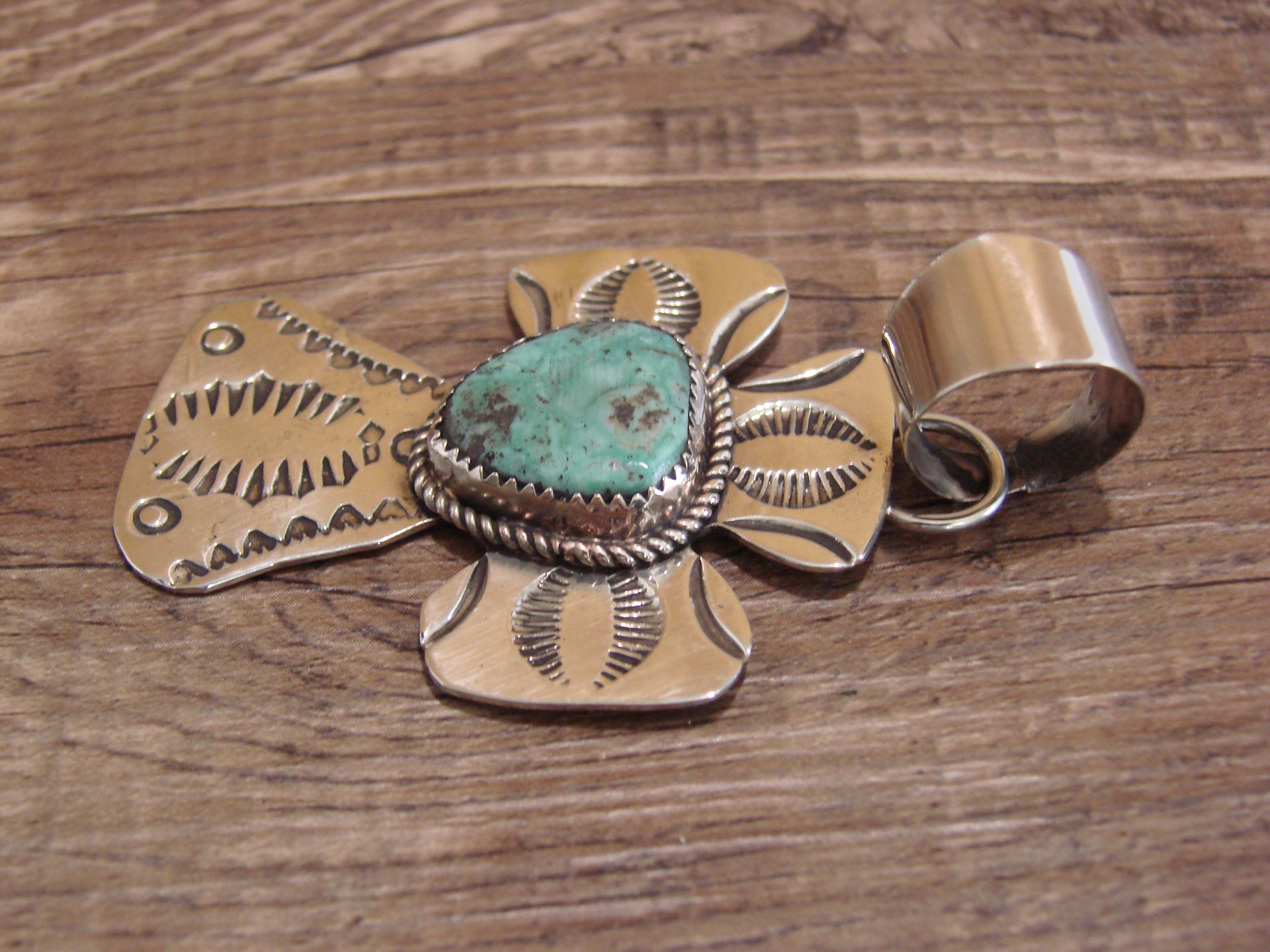 Navajo Nickel Silver & Turquoise Cross Pendant - Cleveland