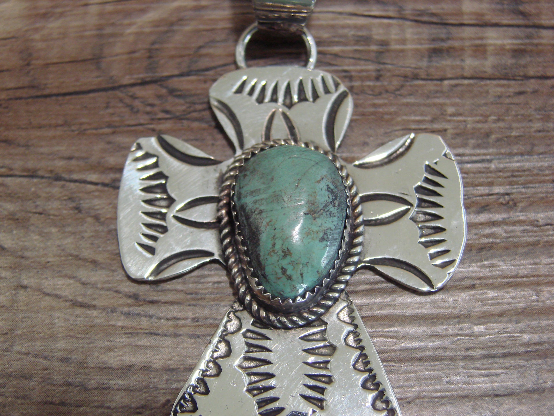 Navajo Nickel Silver & Turquoise Cross Pendant - Cleveland