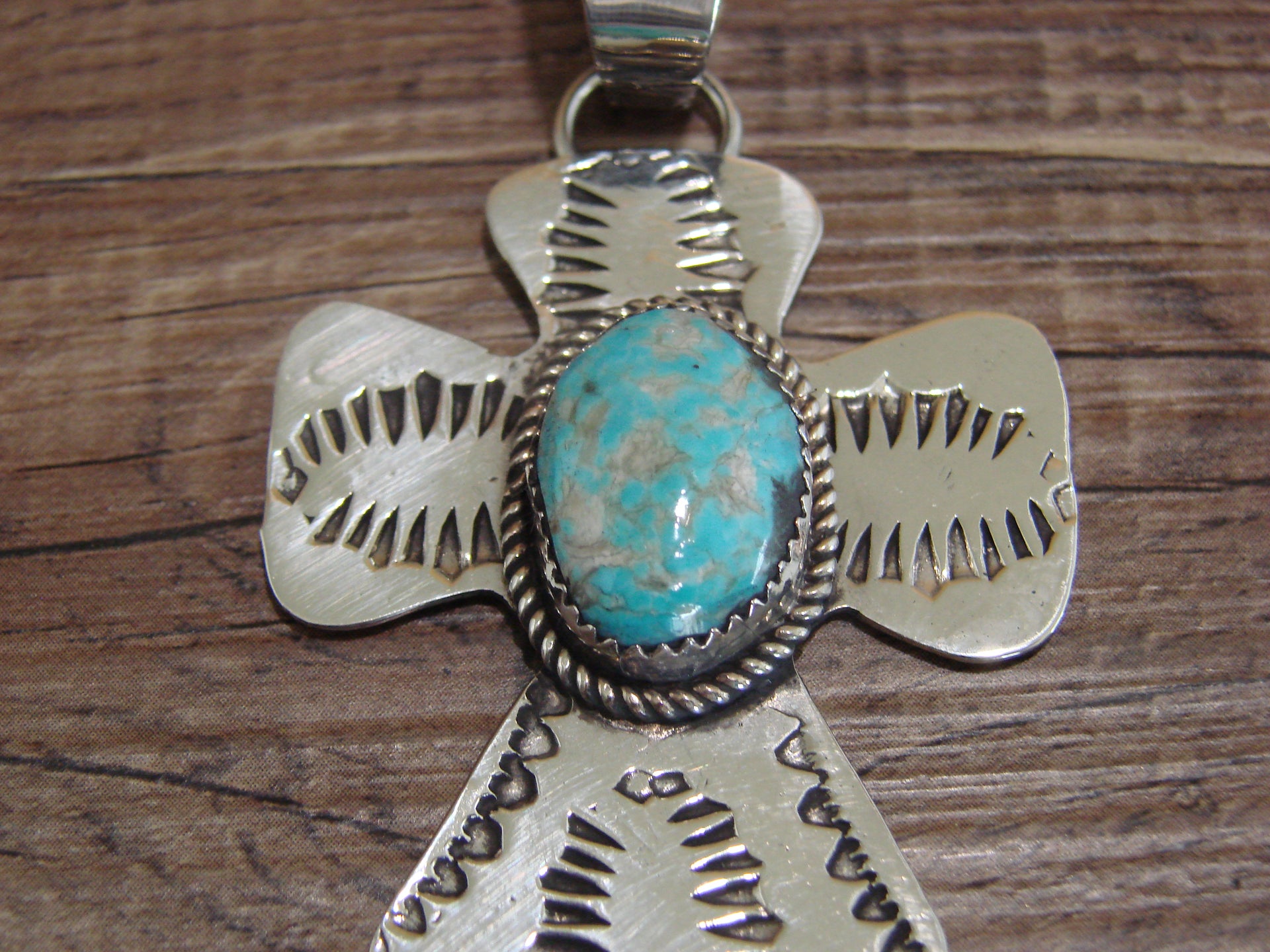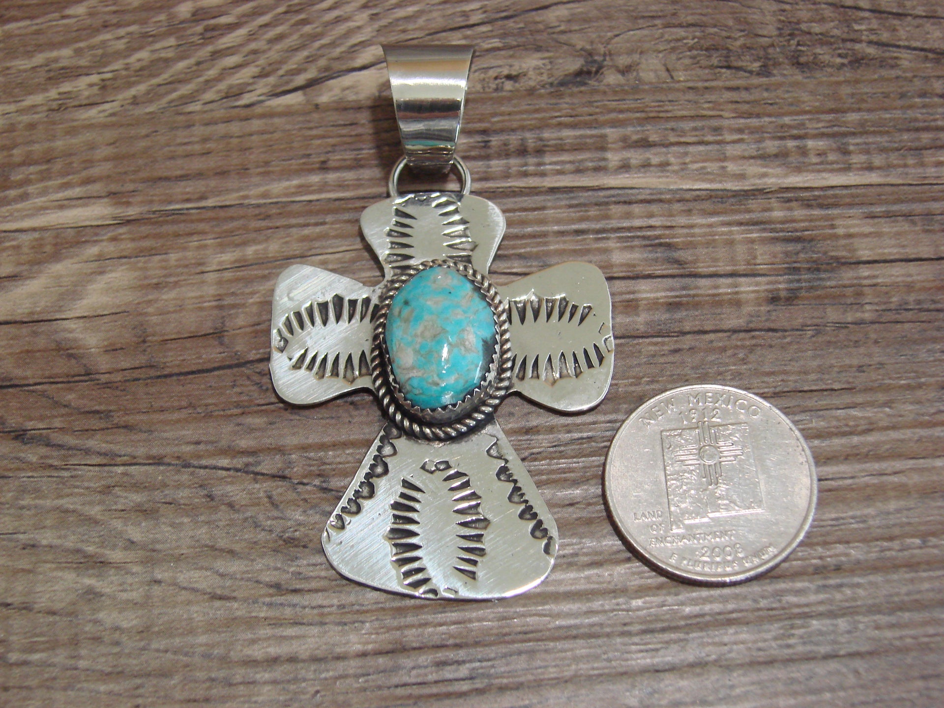 Navajo Nickel Silver & Turquoise Cross Pendant - Cleveland