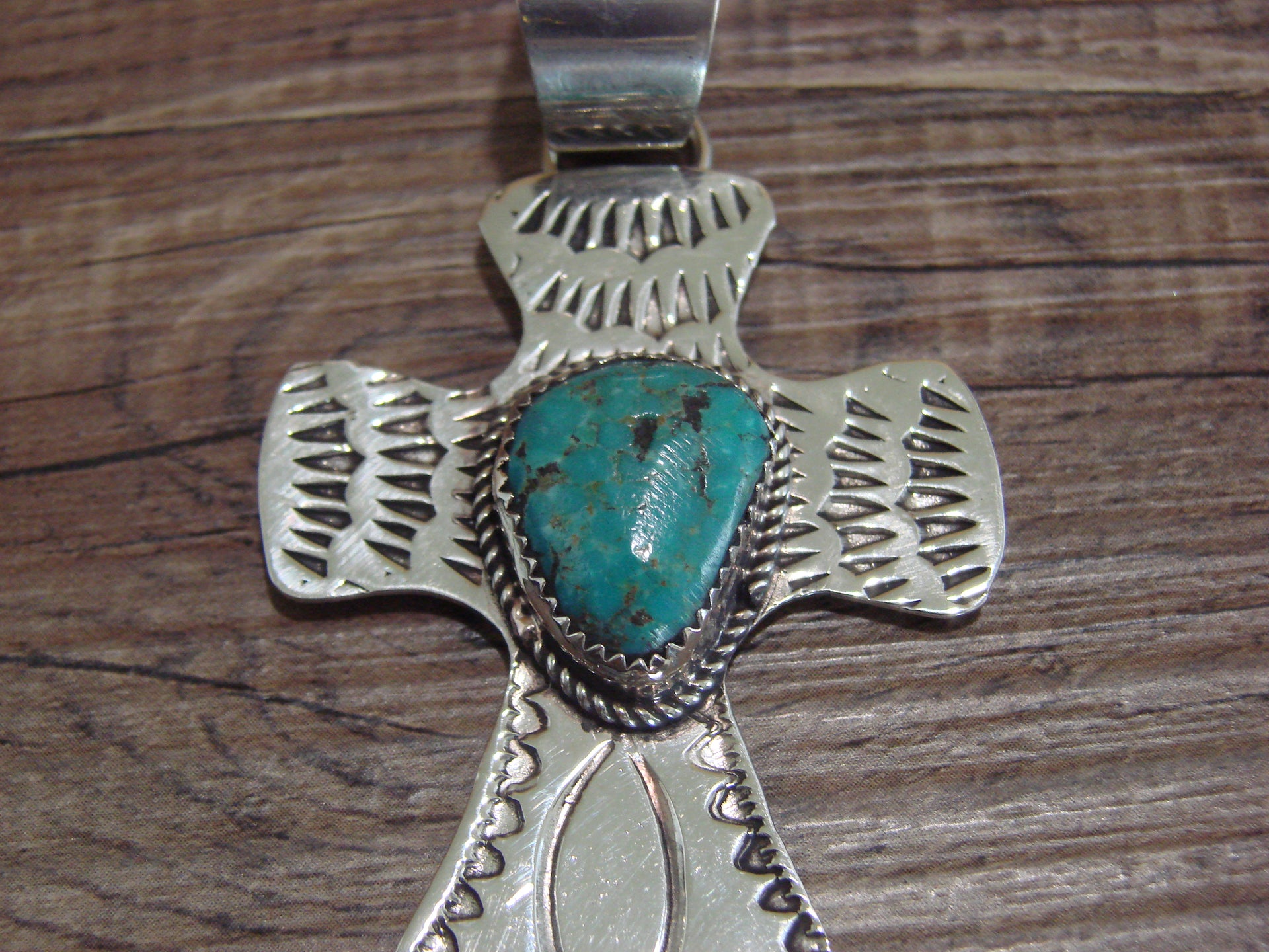 Navajo Nickel Silver & Turquoise Cross Pendant - Cleveland