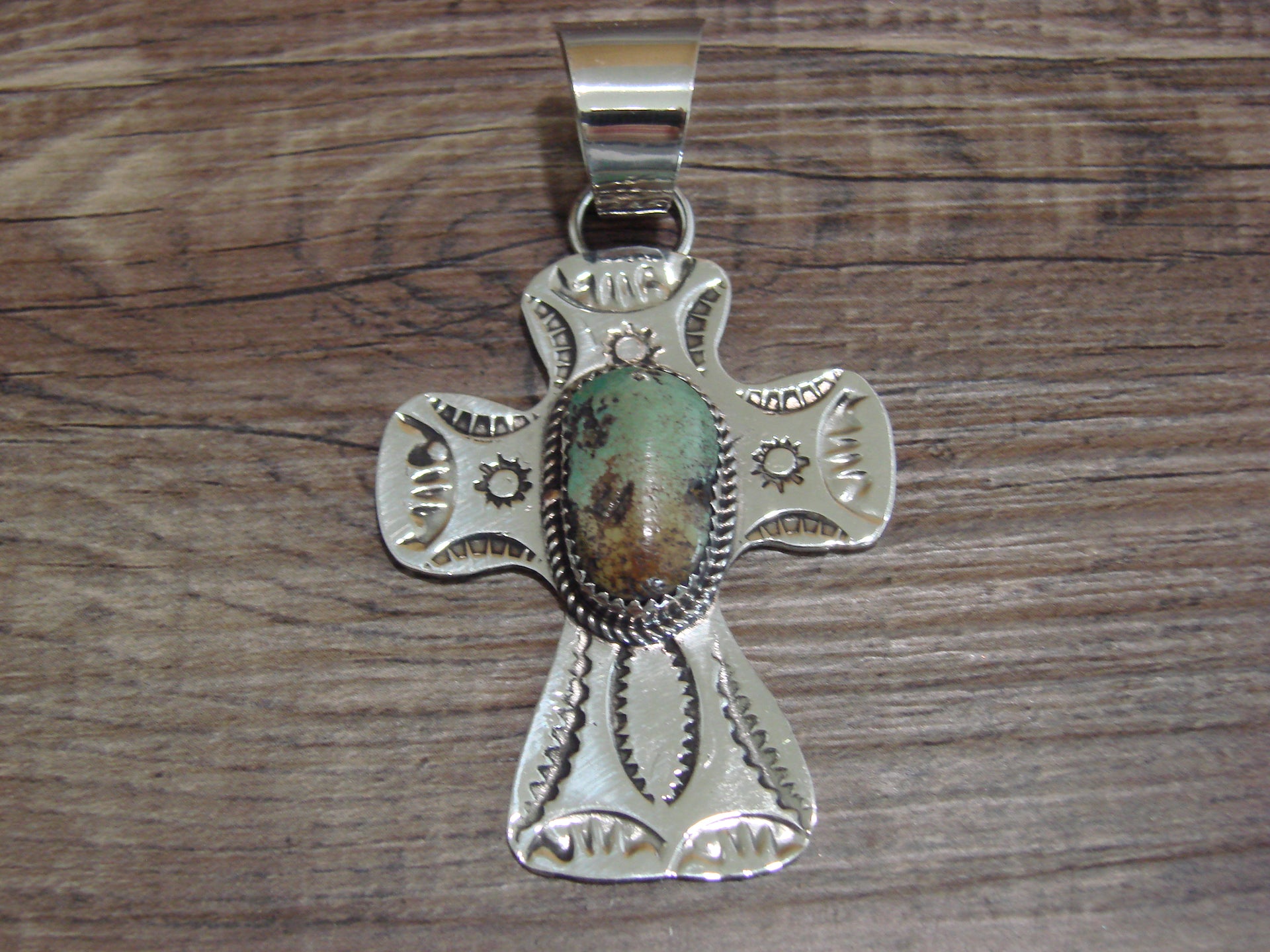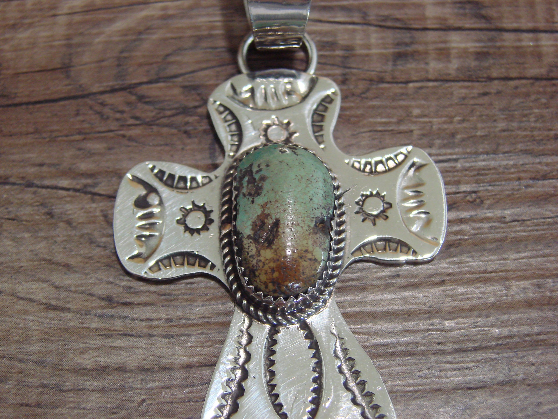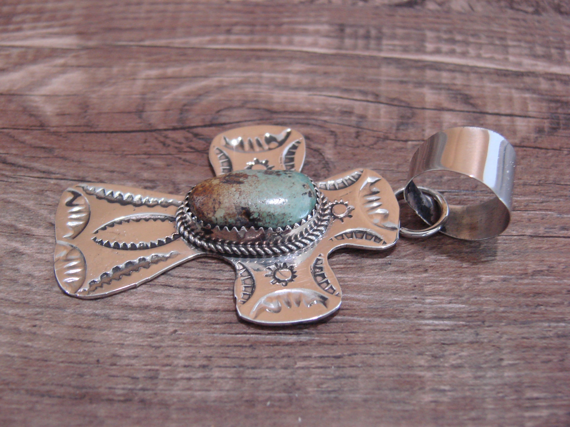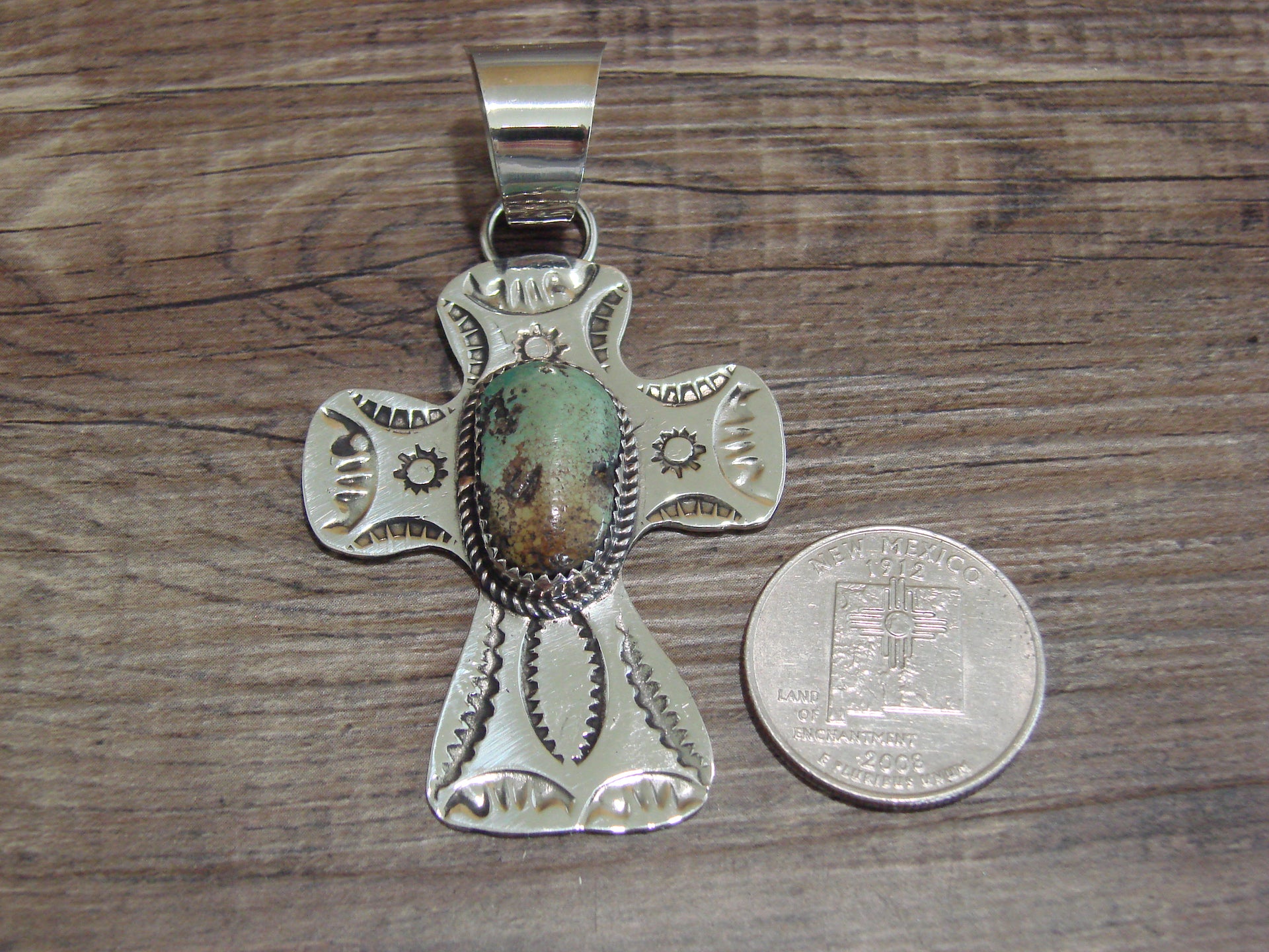 Navajo Nickel Silver & Turquoise Cross Pendant - Cleveland