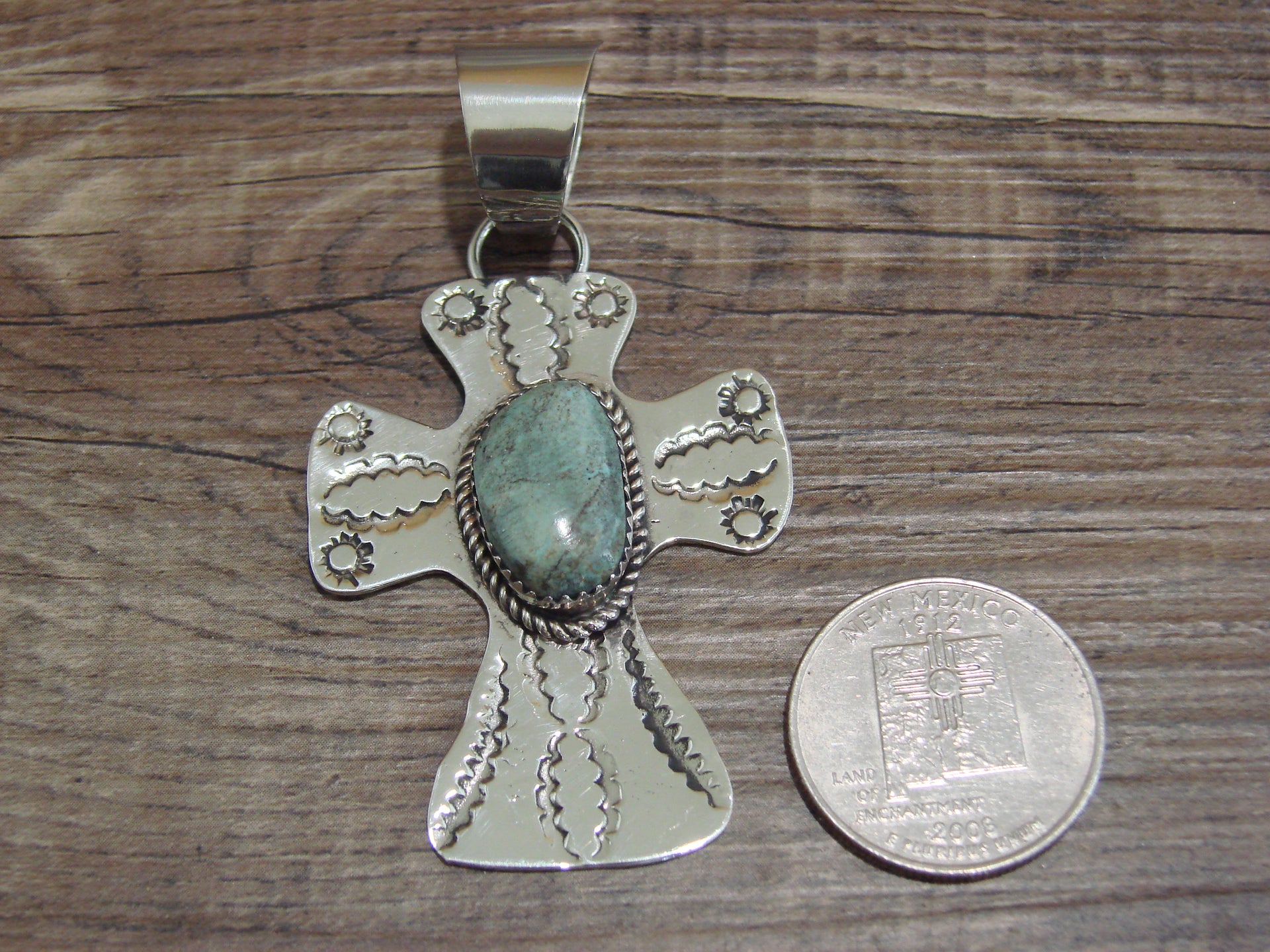 Navajo Nickel Silver & Turquoise Cross Pendant - Cleveland
