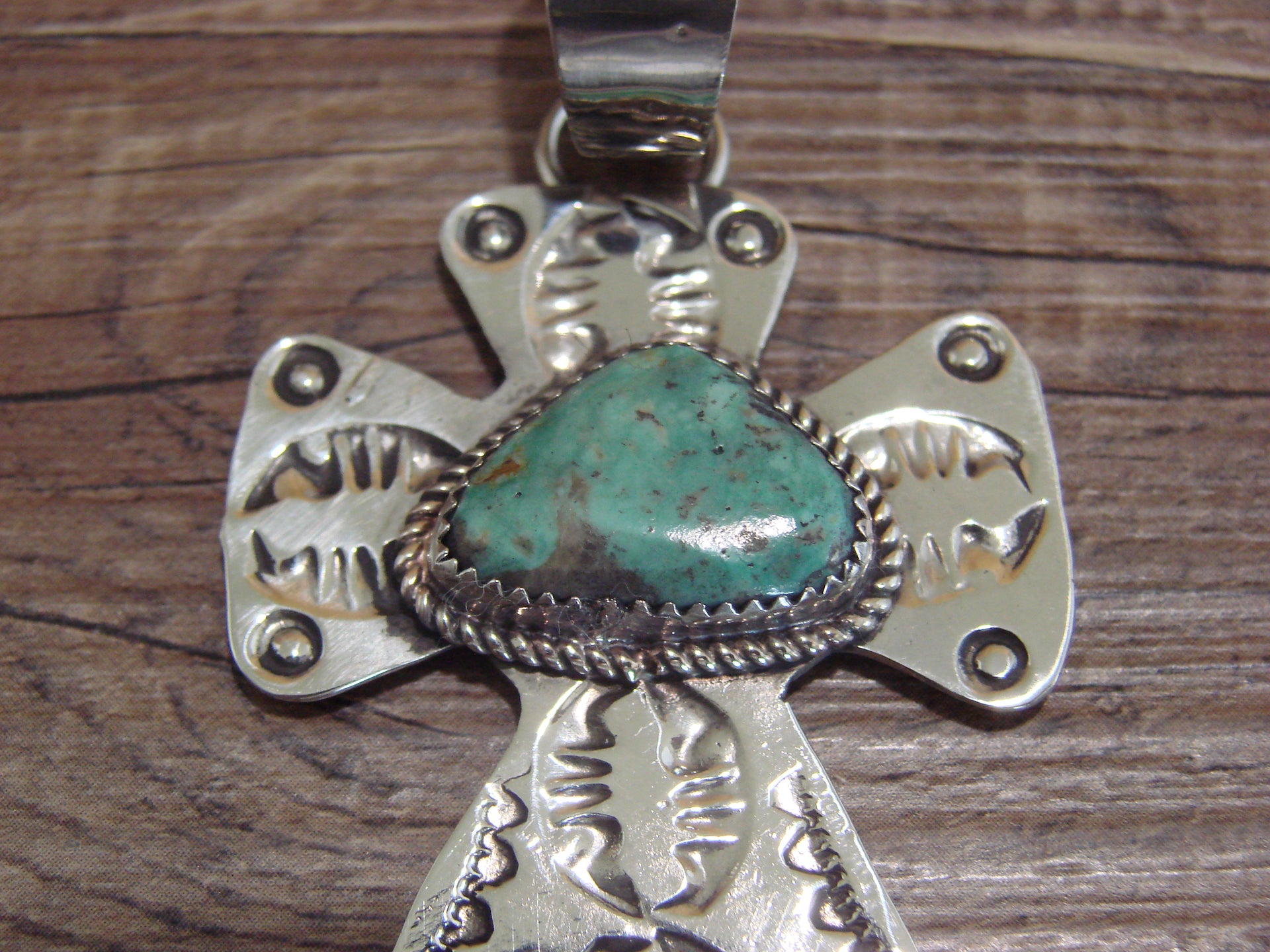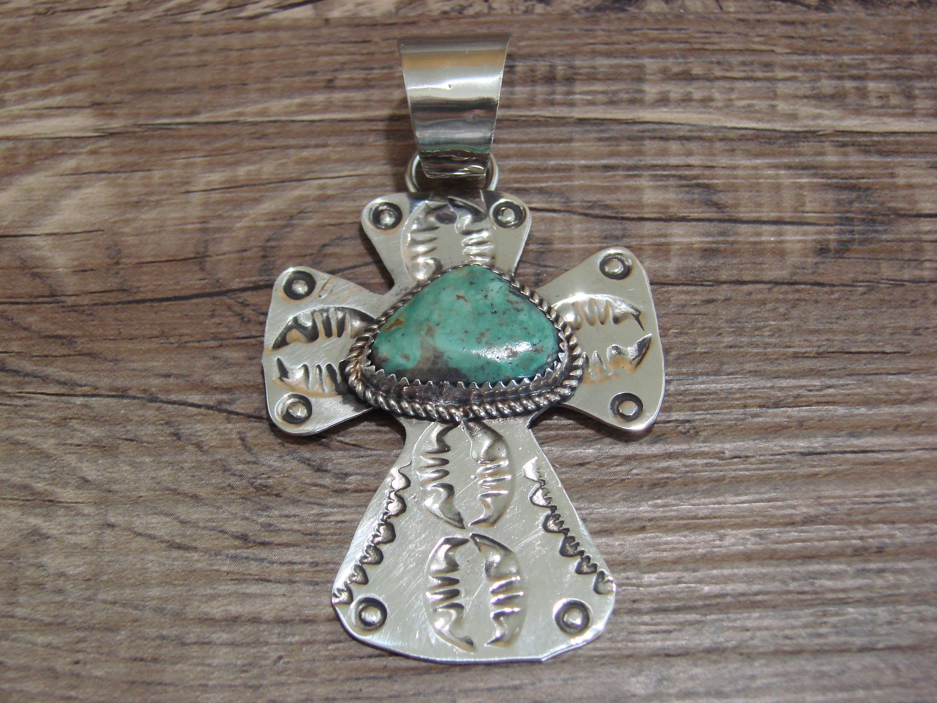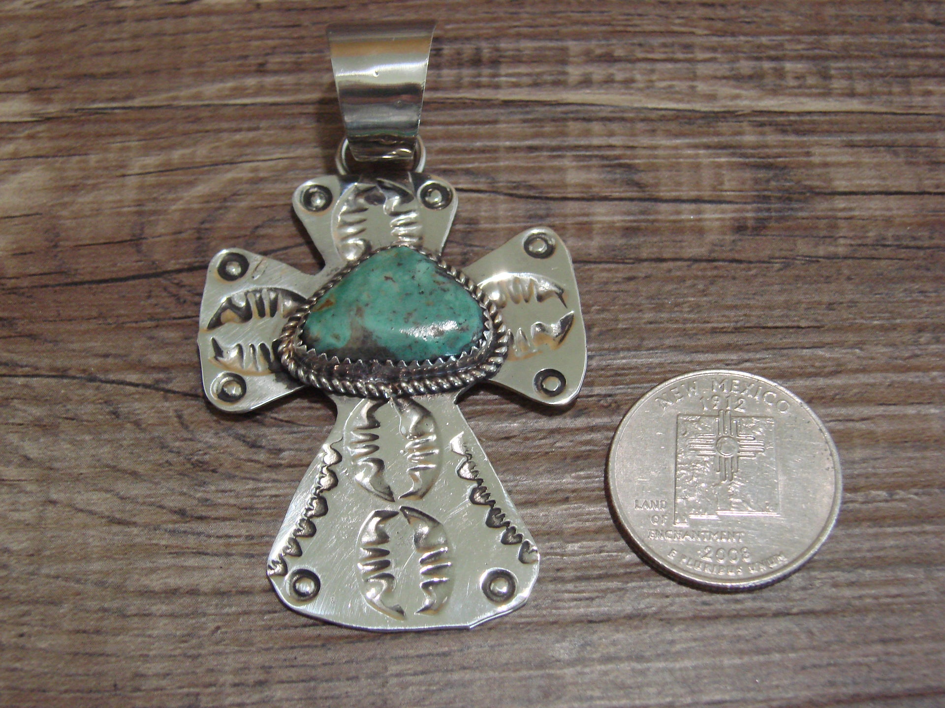 Navajo Nickel Silver & Turquoise Cross Pendant - Cleveland
