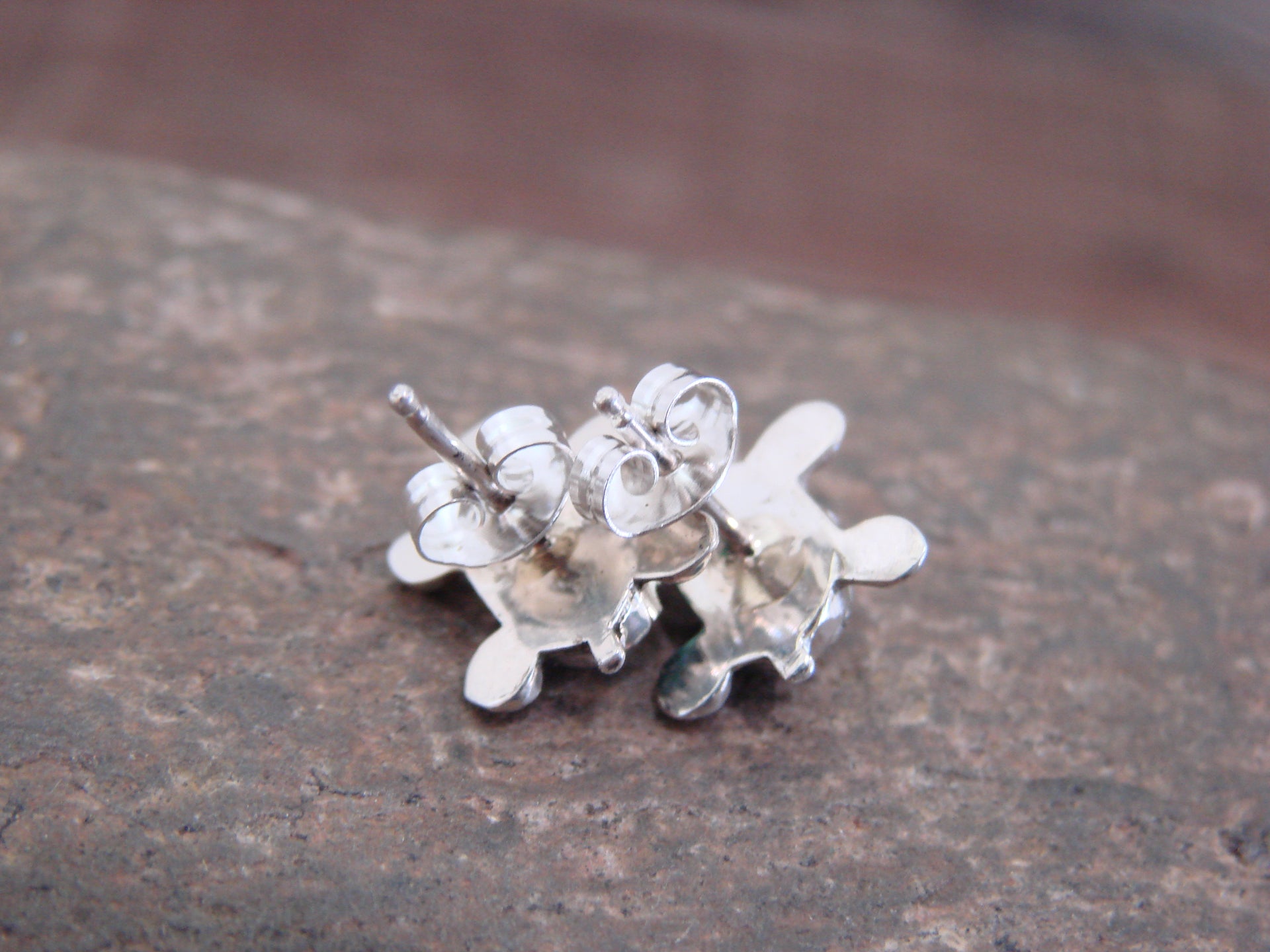 - Native American Sterling Silver Malachite Turtle Post Earrings by Kinsel