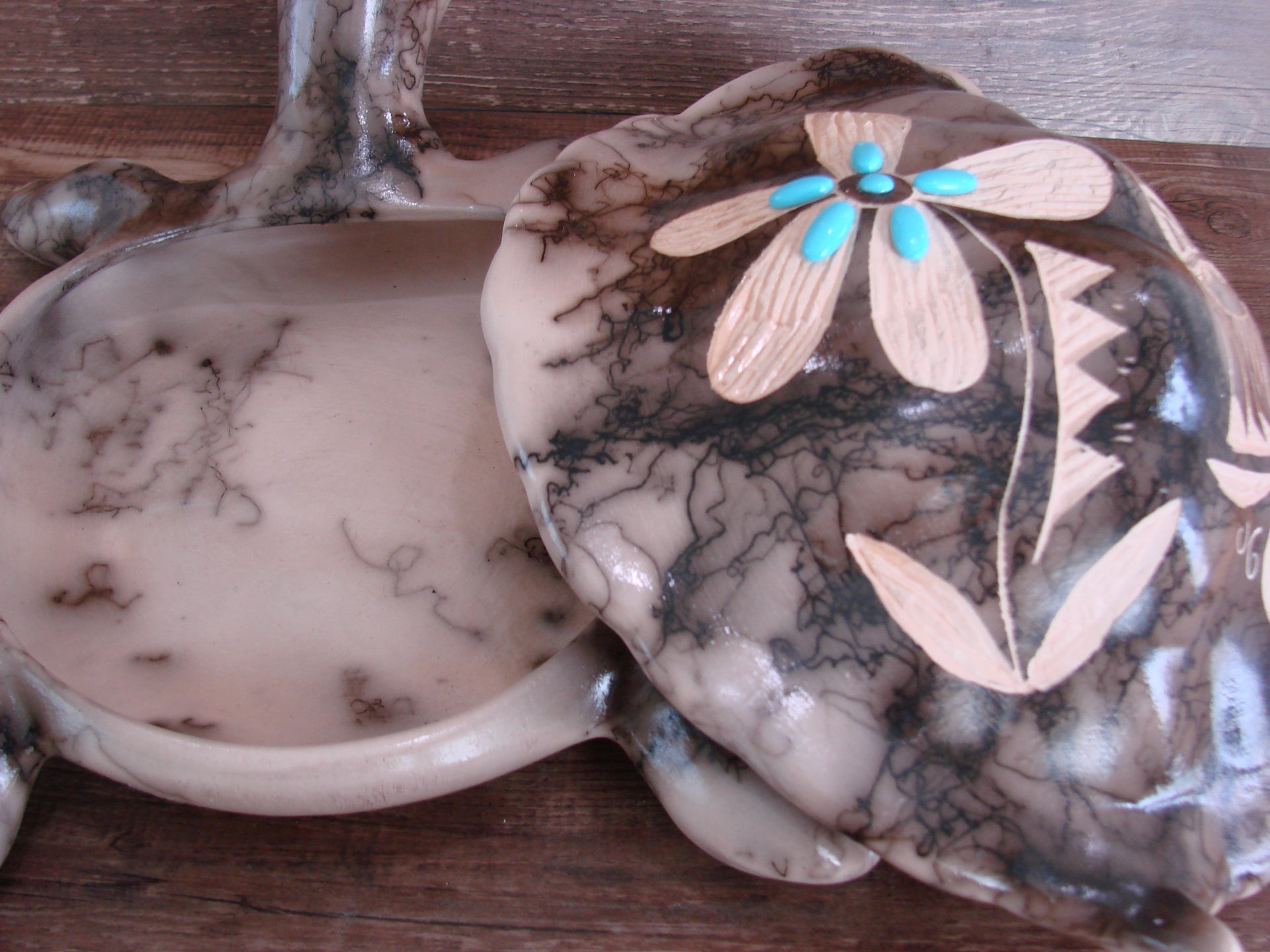 Native American Navajo Indian Horse Hair & Turquoise Turtle Sculpture from Western New Mexico. This Gorgeous piece of Pottery features beautiful horse hair and hand etching throughout. The Horse hair is laid over this piece during firing, the result is a beautiful one of a kind look! Hand etched by Navajo artist M. Vail. Signed. Free Shipping included!