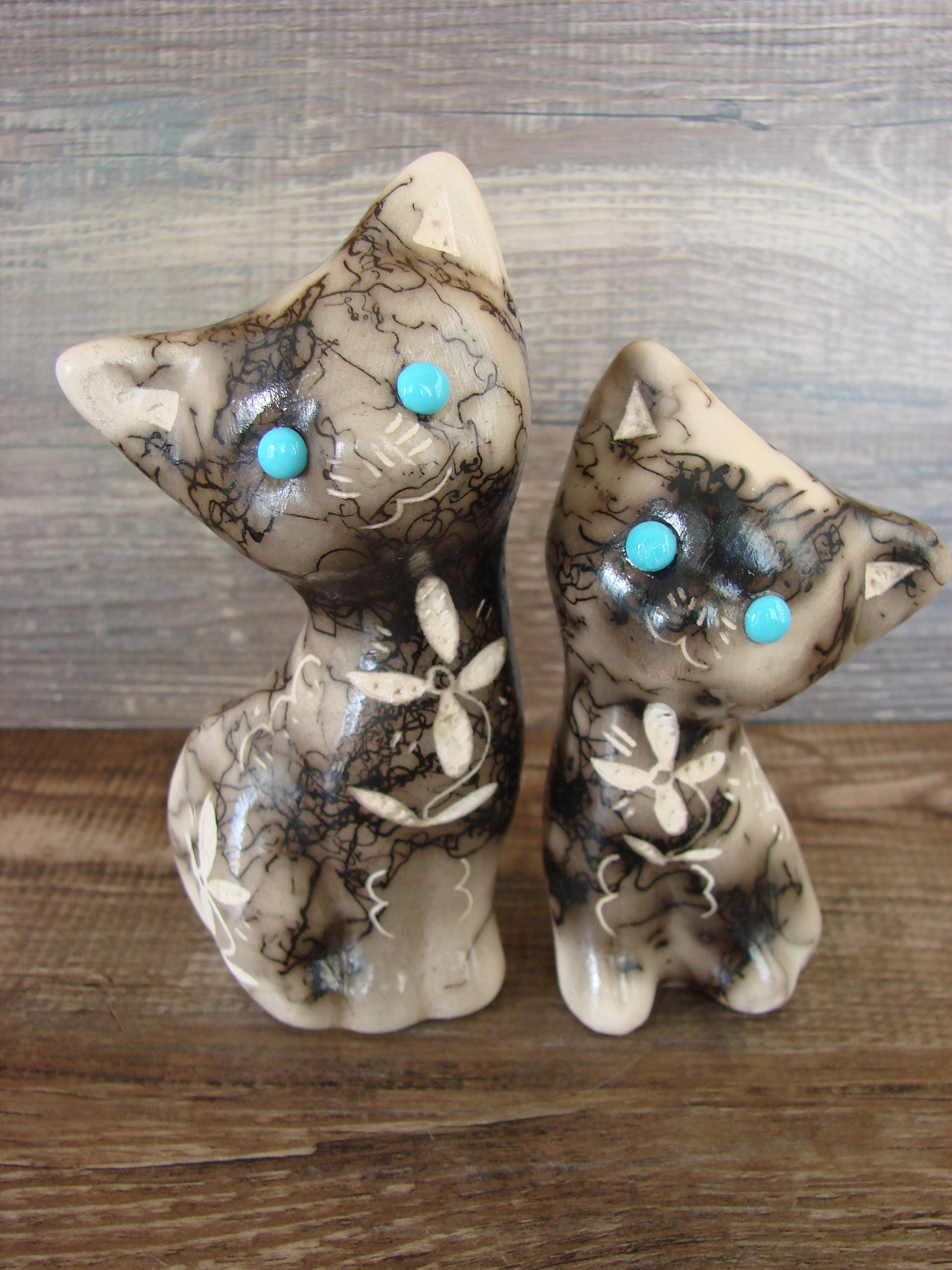 Native American Horse Hair Cat Pottery Set by Vail