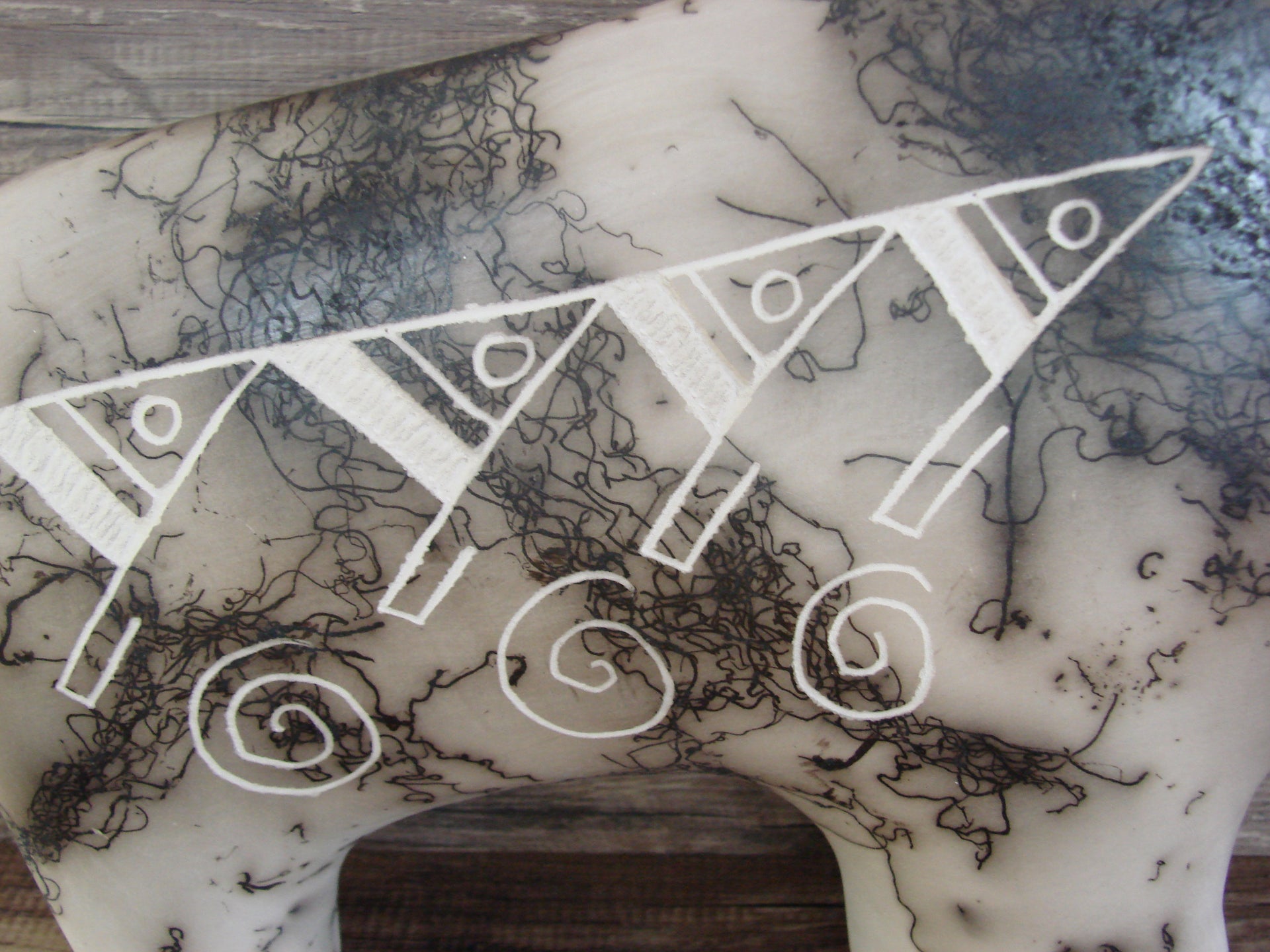 Native American Pottery Horse Hair Buffalo Sculpture by Yellow Corn