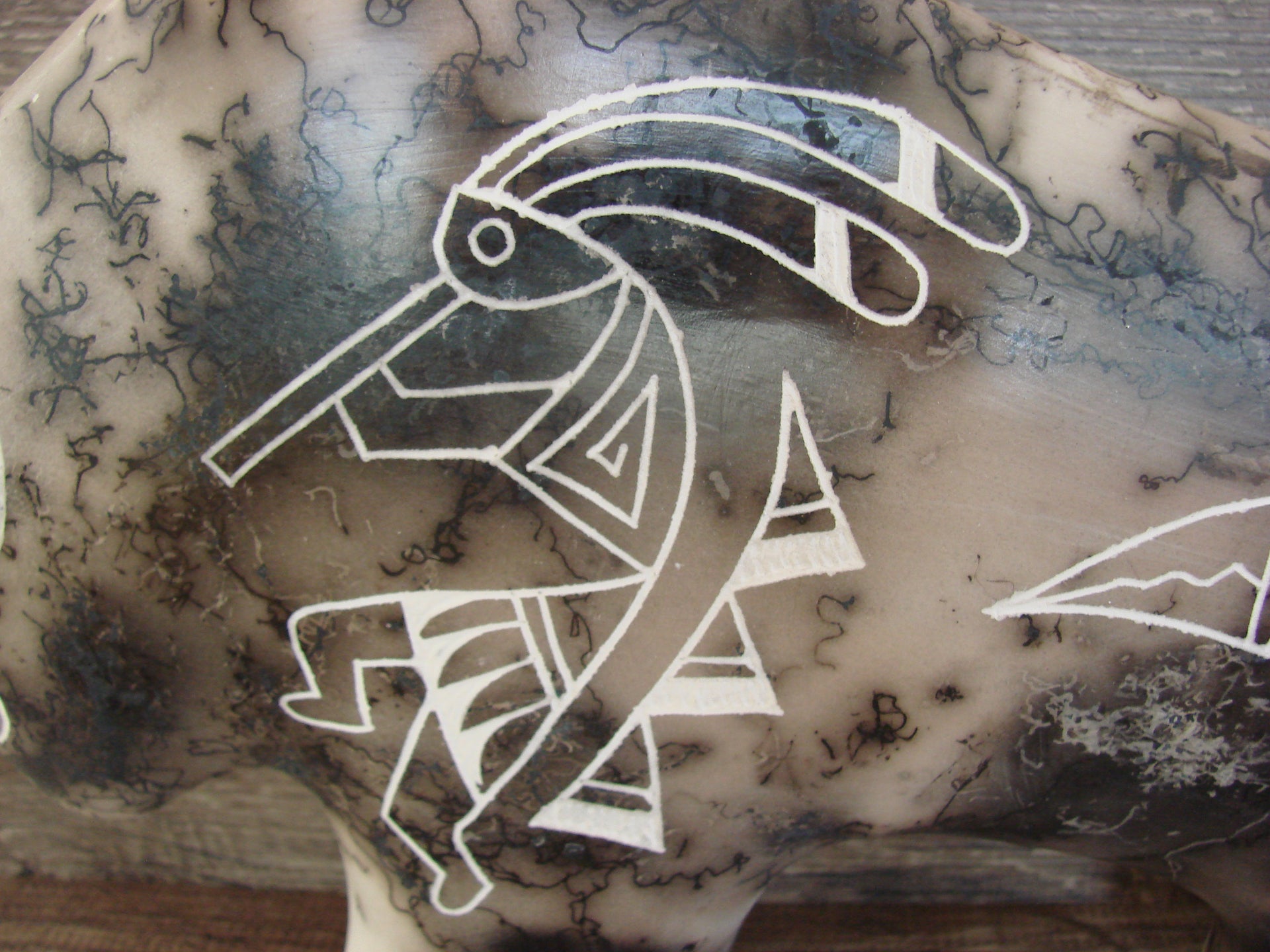 Native American Pottery Horse Hair Buffalo Sculpture by Yellow Corn