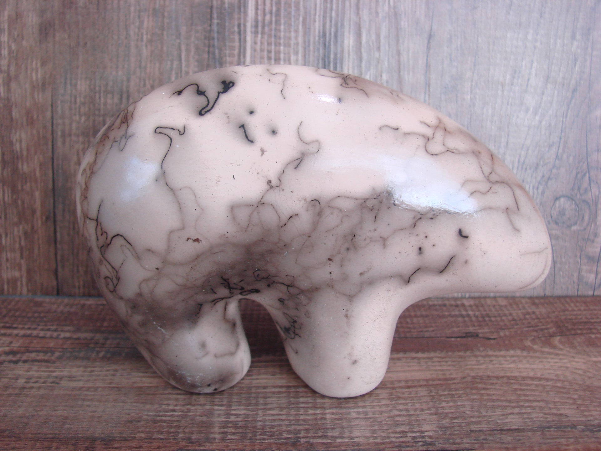 Native American Navajo Indian Horse Hair Bear Sculpture from Western New Mexico. This sculpture features beautiful horse hair and hand etching throughout. The Horse hair is laid over this piece during firing. The result is a unique one of a kind look. Hand etched by Navajo artist M Vail. Unsigned. Free Shipping included!