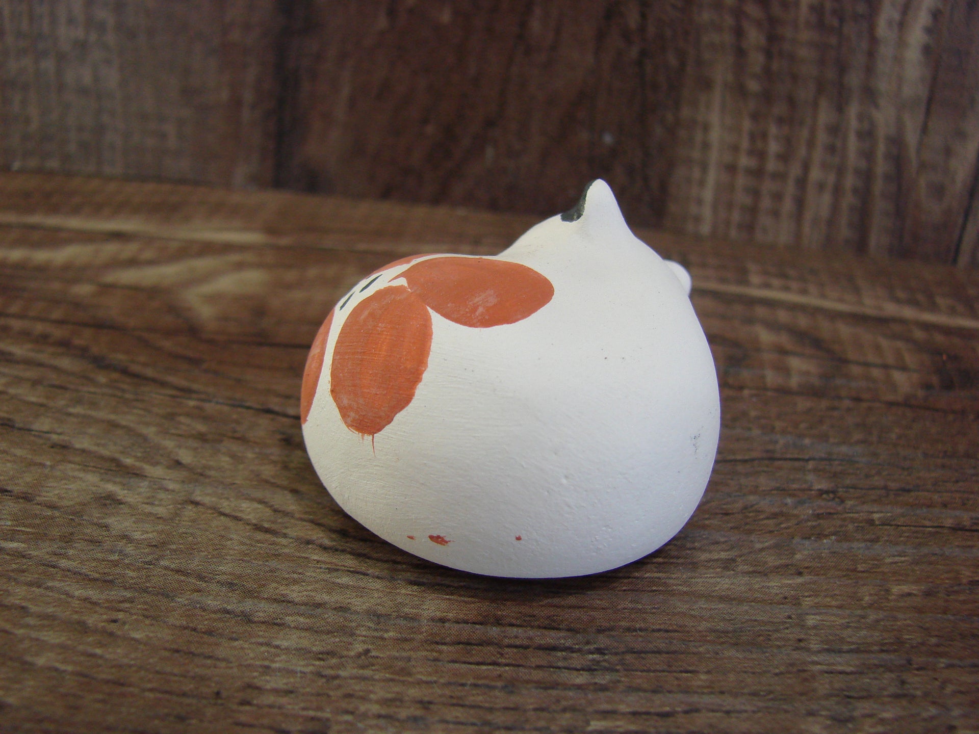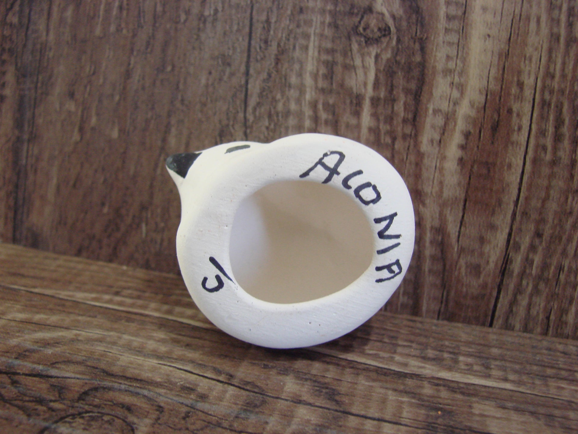 Genuine Native American Acoma Pueblo Indian Hand Painted Fine Line Sleeping Cat Pottery Desk Pet from Western New Mexico. This Small piece of pottery Measures: 1 1/2" x 1 1/4" and features Stunning natural pigment hand painted patterns throughout. Hand painted by Acoma artist Shirley Concho. The bottom is signed. Free Shipping included!