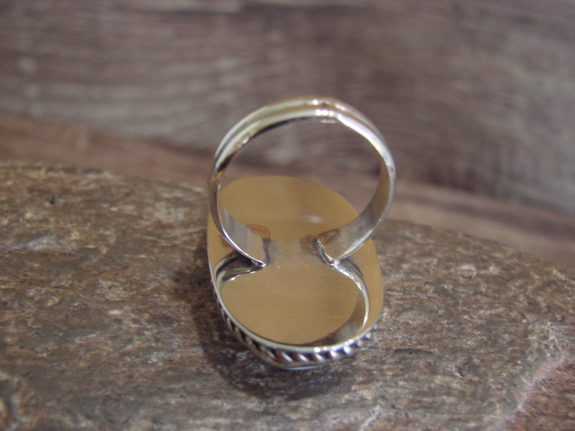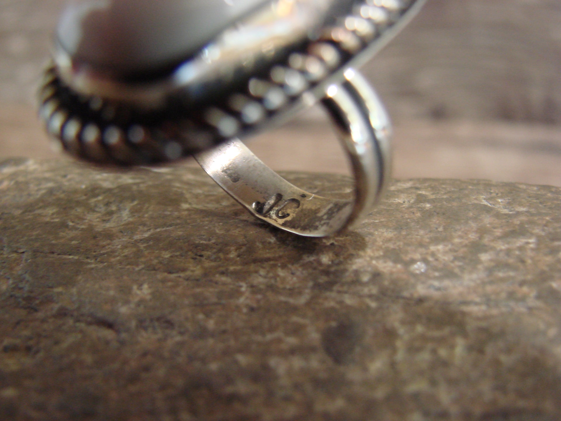Native American Navajo Indian Nickel Silver & Howlite Ring from Western New Mexico. This ring features a Howlite stone set into a smooth Nickel Silver bezel setting. Beautiful Nickel Silver details Surround the Stone. This ring is made in Nickel Silver. This ring is Stunning! Navajo Indian handmade by Silversmith Jackie Cleveland. Signed "JC" on the back. Free Shipping and Gift Box included!